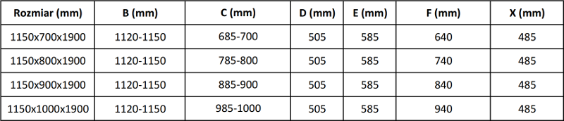Dušo kabinos, durys ir sienelės yra standartiškai pritaikytos montuoti ant nustatytų matmenų dušo padėklų. Būtent šie matmenys nurodomi gaminio pavadinime arba aprašyme. Tačiau atkreipkite dėmesį, kad faktiniai elementų matmenys gali šiek tiek skirtis nuo vardinių verčių. Planuojant montuoti tiesiai ant grindų, rekomenduojama atidžiai patikrinti išorinius matmenis ir elementų išdėstymą pagal techninį brėžinį.