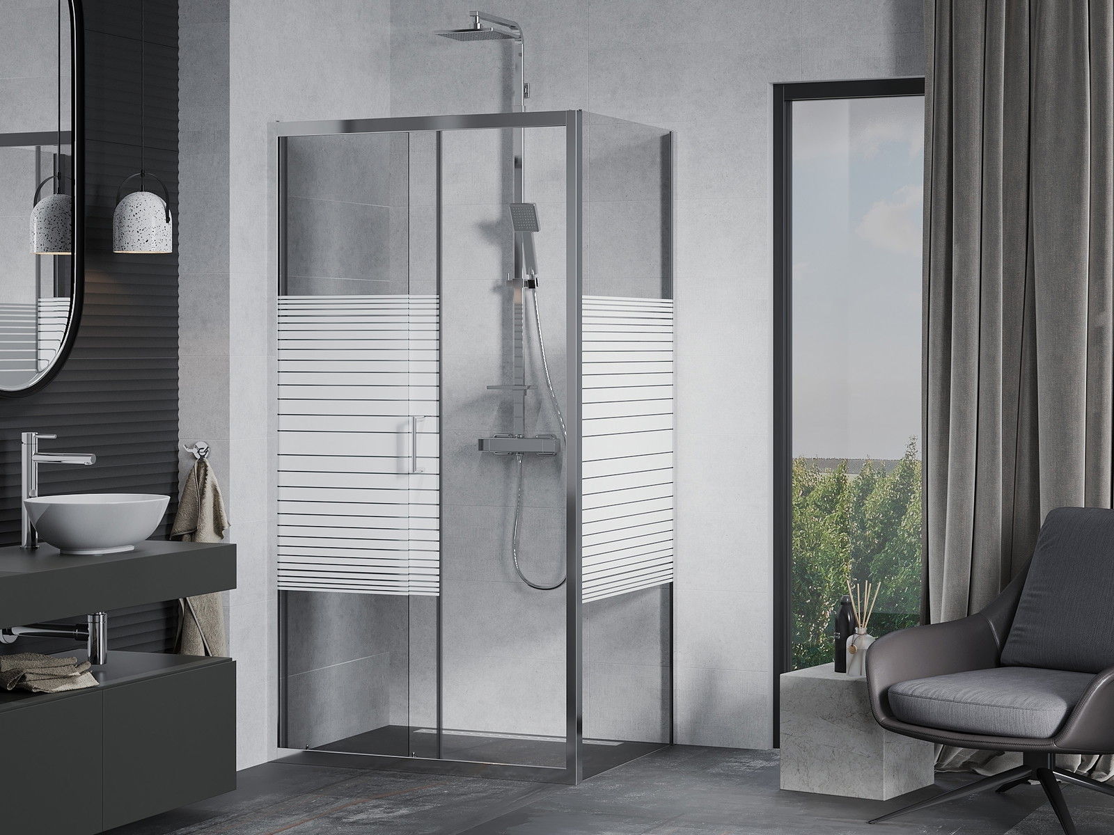 Mexen Apia stumdomas dušo kabinas 120 x 80 cm, baltos juostelės, chromas - 840-120-080-01-20