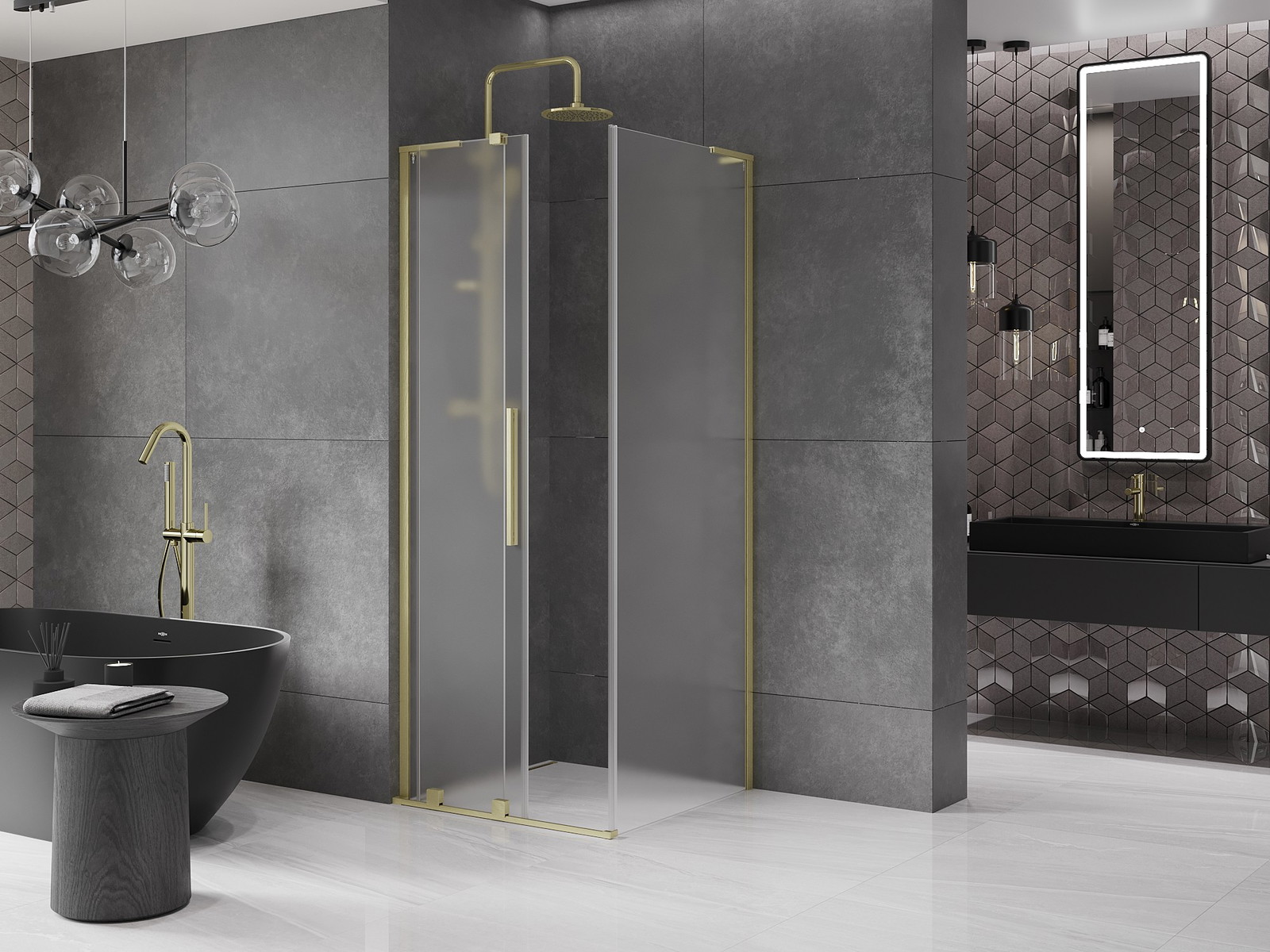 Mexen Velar L stumdyje prausyklos kabina 110 x 110 cm, šerkšnas, aukso šepečiu šukuoti - 871-110-110-33-55