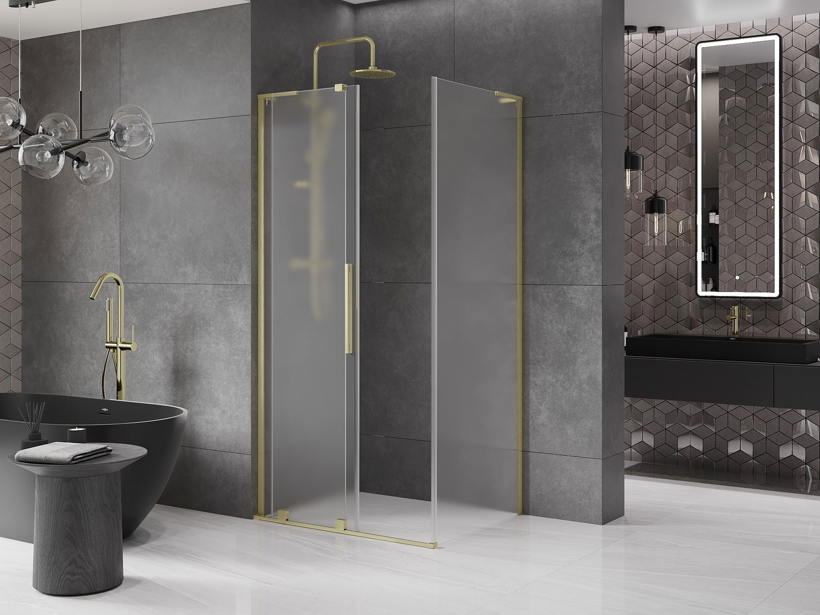 Mexen Velar L slankiojantis dušo kabina 120 x 90 cm, matinė, auksinės šukuotos spalvos - 871-120-090-33-55
