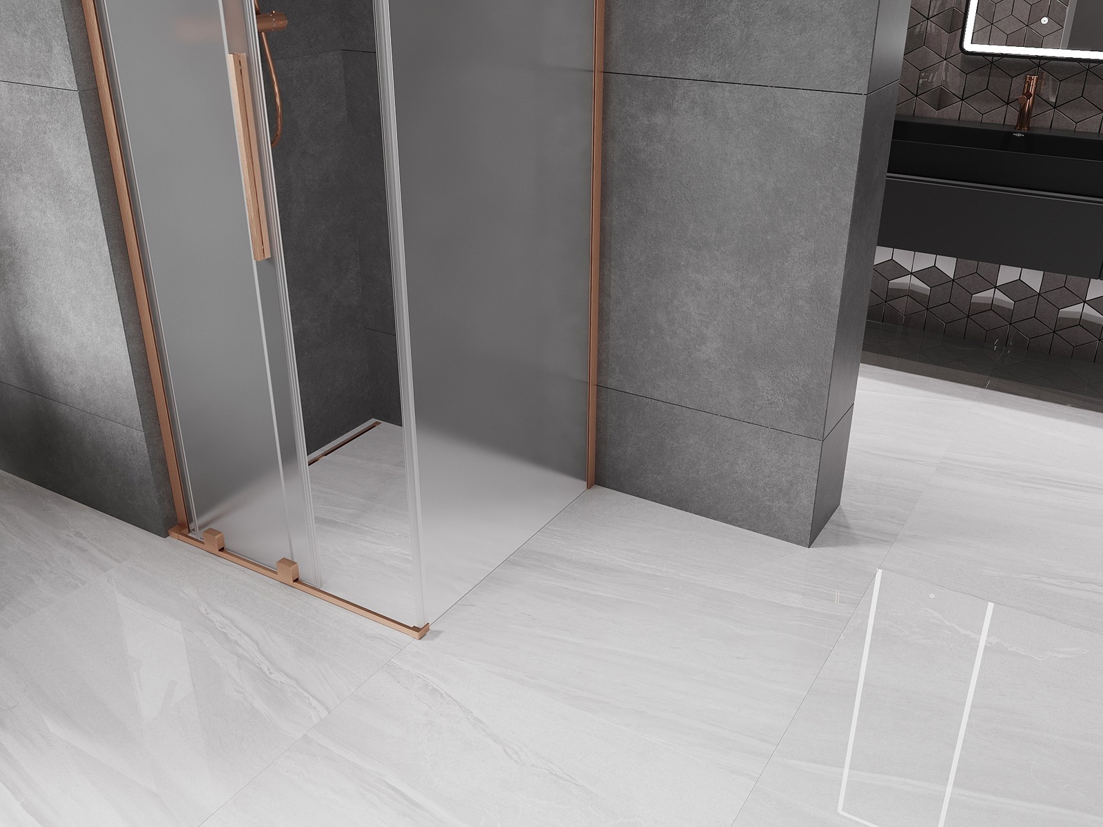 Mexen Velar L stumdančioji dušo kabina 110 x 110 cm, matinis, valcuotas varis - 871-110-110-33-65