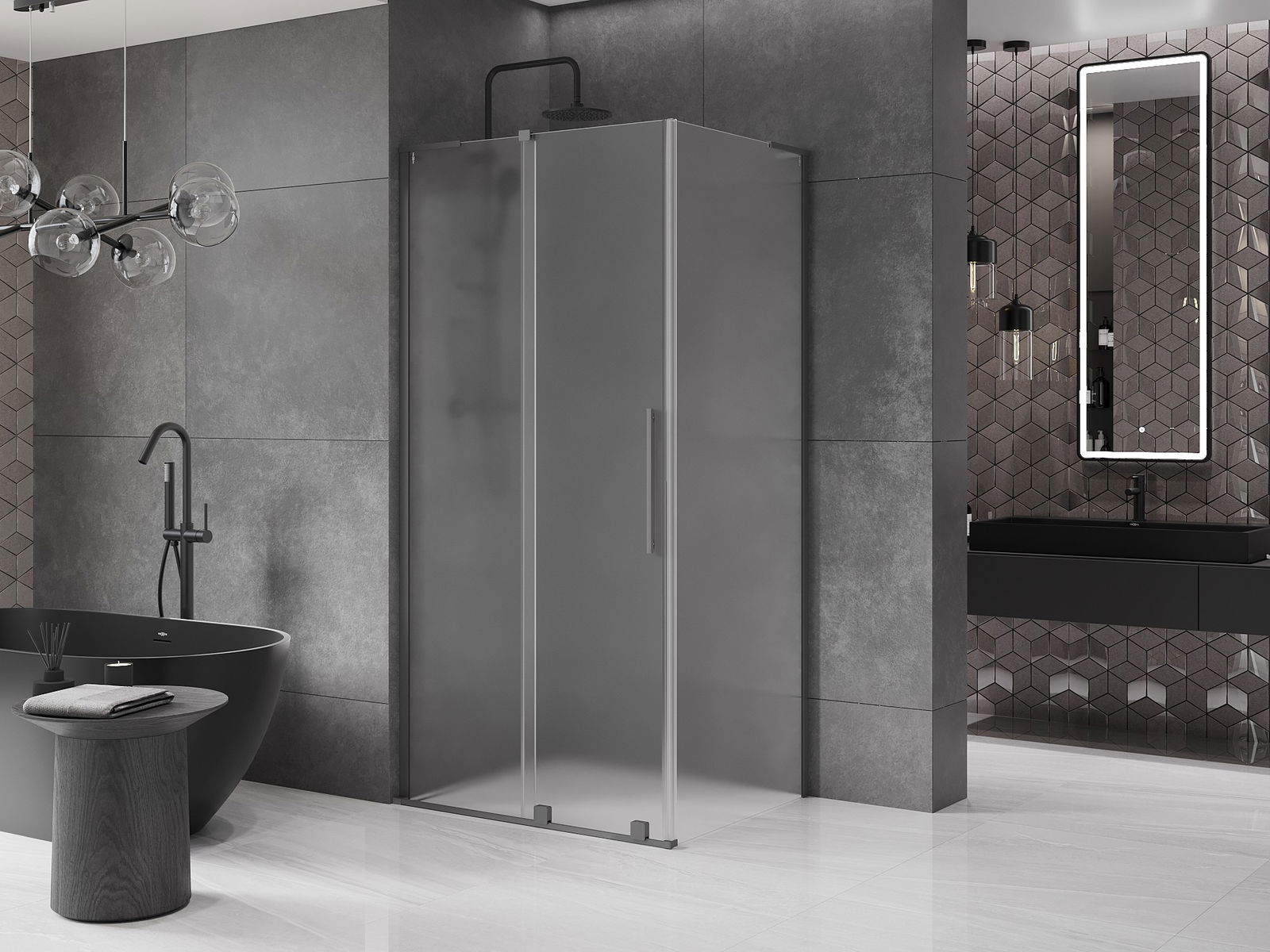 Mexen Velar L stumdomas dušo kabina 90 x 85 cm, matinė, gun metal - 871-090-085-33-95