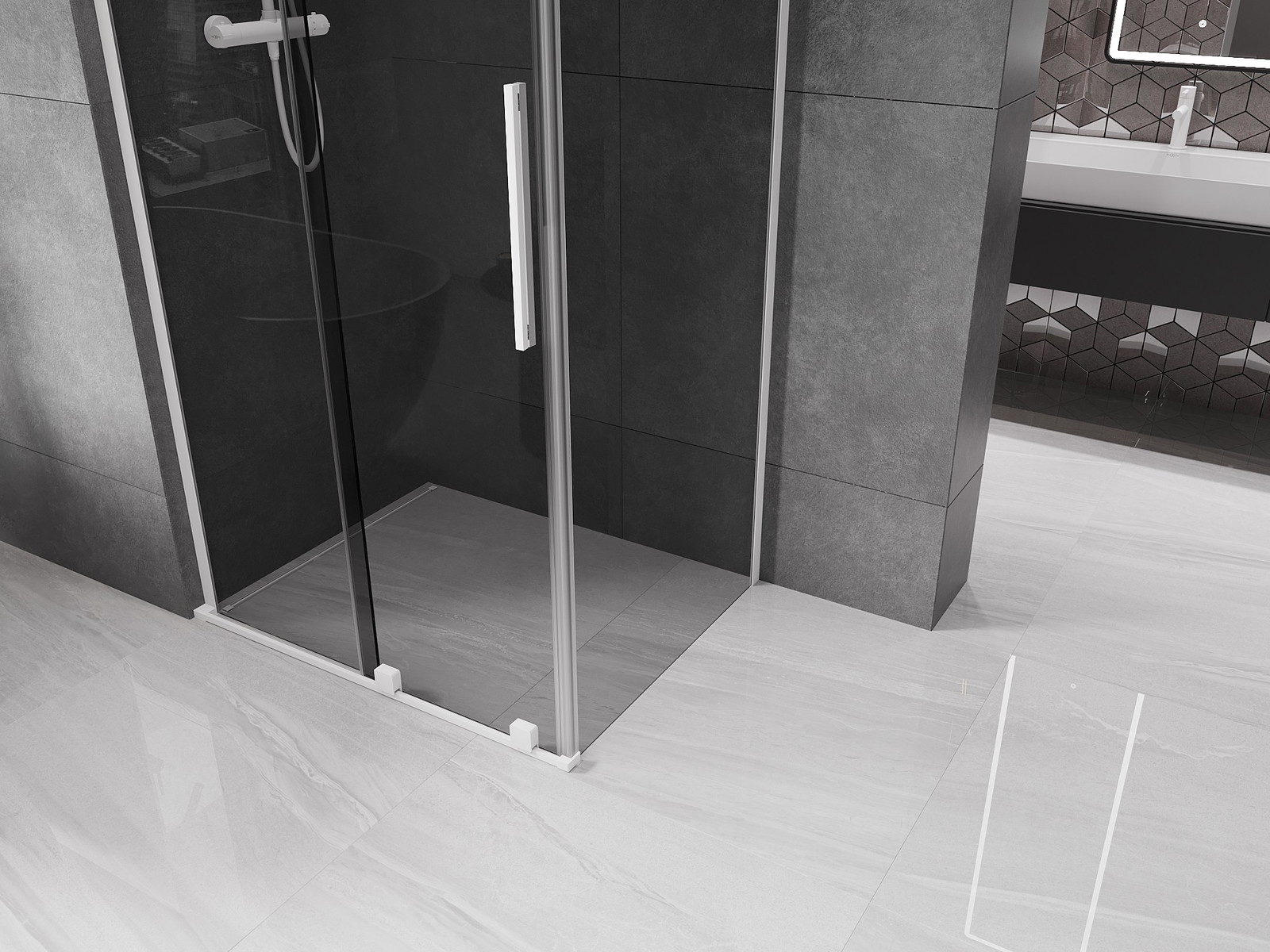 Mexen Velar L slankiojamos dušo kabinos 90 x 85 cm, grafito, balta - 871-090-085-43-20