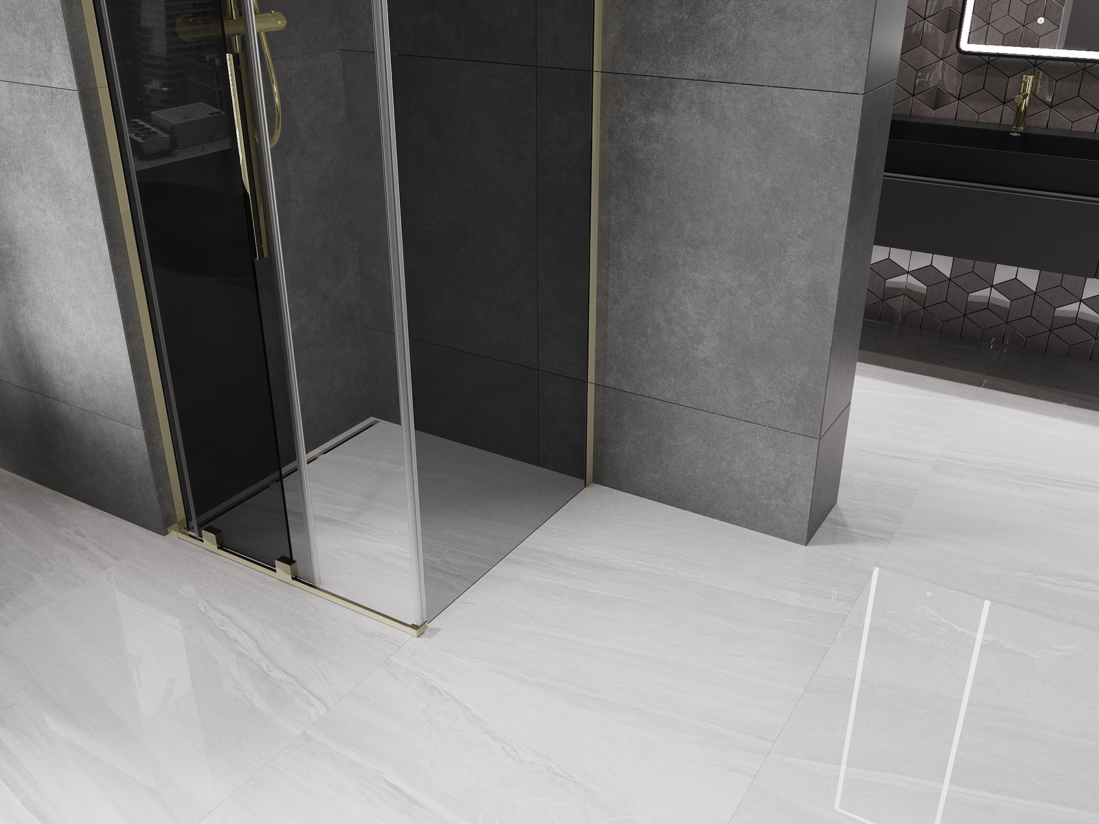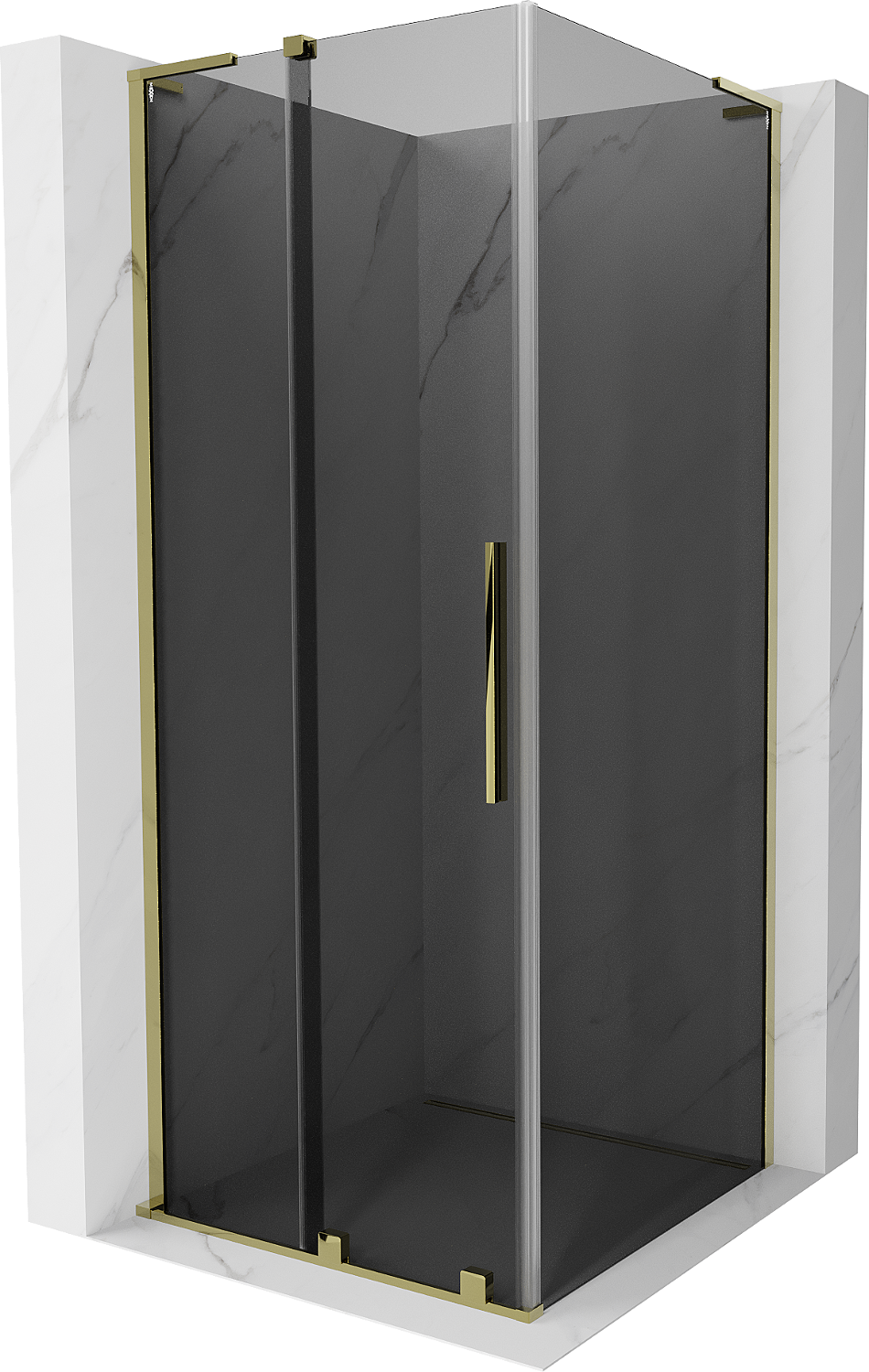 Mexen Velar L stumetrinė slanki dušo kabina 100 x 100 cm, grafitas, auksas - 871-100-100-43-50