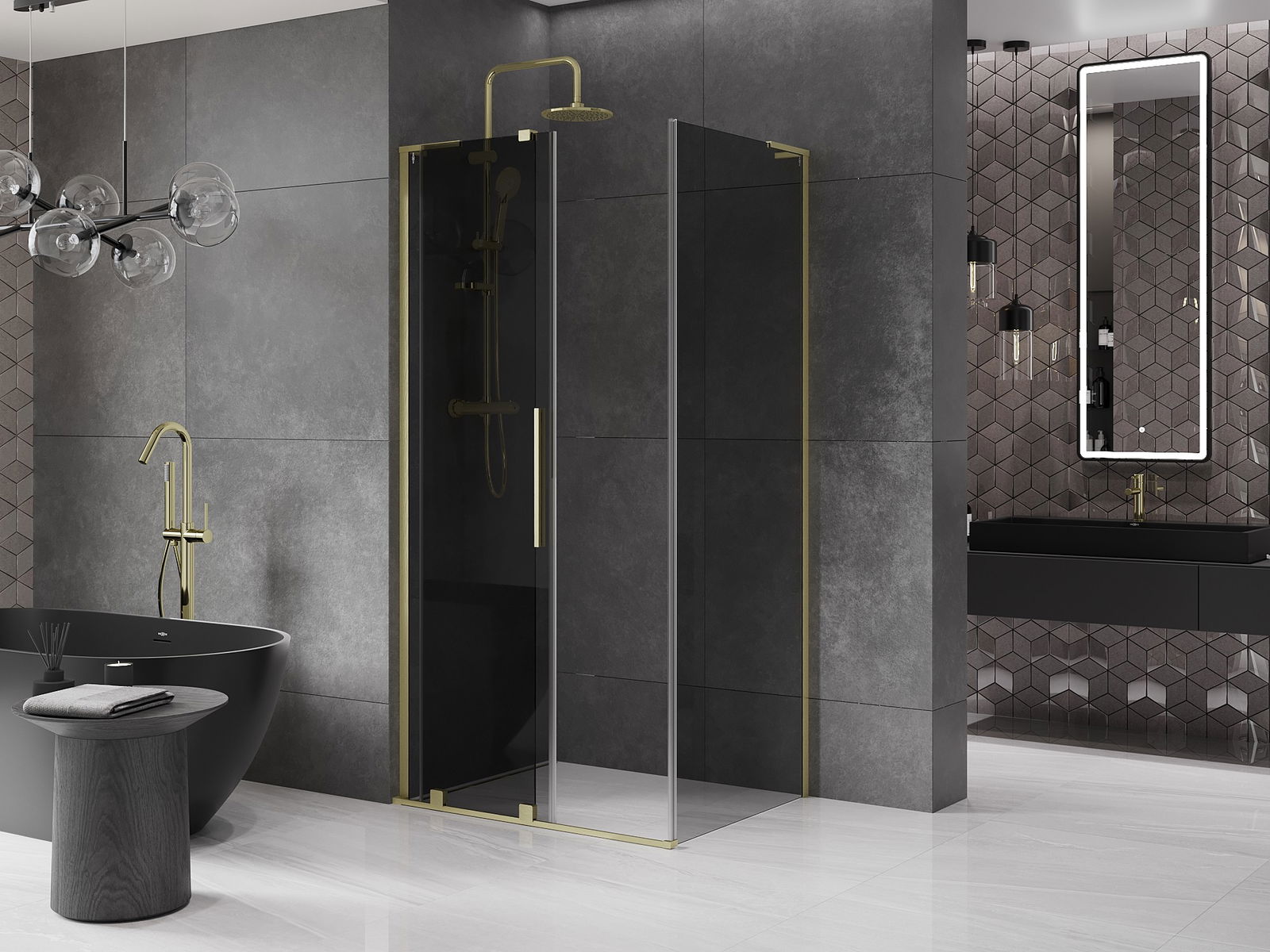 Mexen Velar L slankiojama dušo kabina 110 x 70 cm, grafitas, šlifuotas auksas - 871-110-070-43-55
