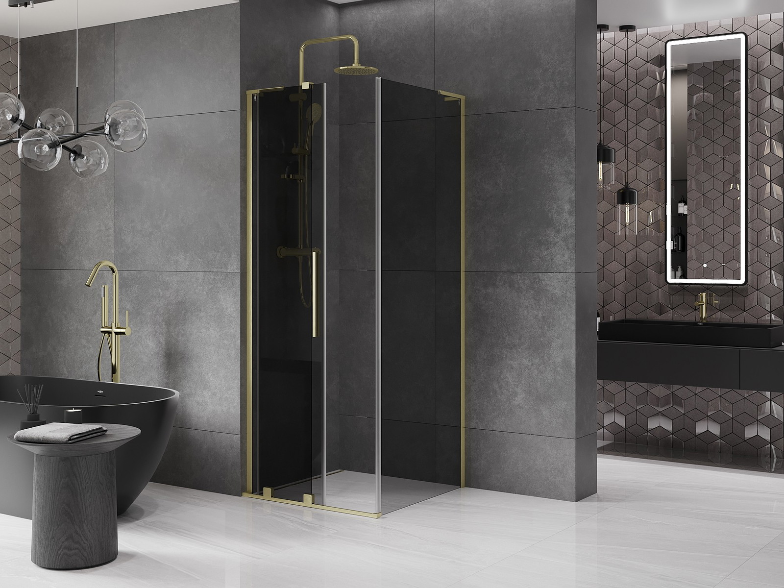 Mexen Velar L stumdoma dušo kabina 110 x 110 cm, grafitas, šlifuotas auksas - 871-110-110-43-55