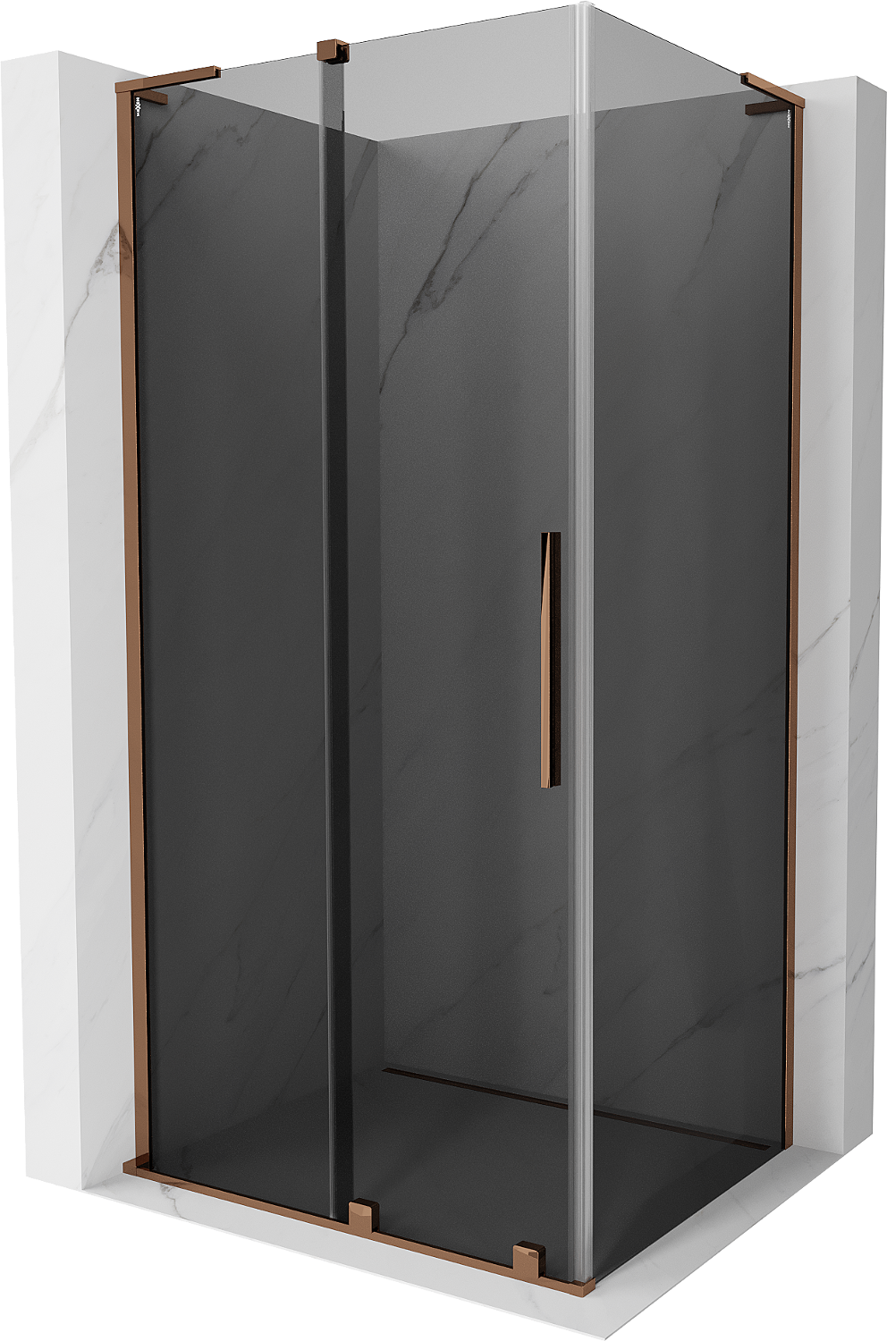 Mexen Velar L stumdomosios dušo durys 90 x 100 cm, grafitas, rožinis auksas - 871-090-100-43-60