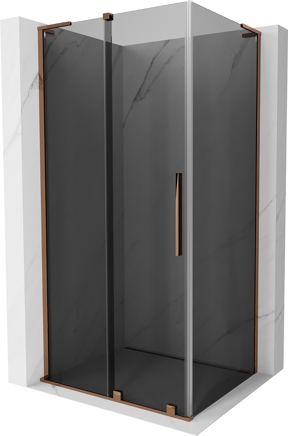 Mexen Velar L slankiojamoji dušo kabina 120 x 110 cm, grafitas, rožinis auksas - 871-120-110-43-60