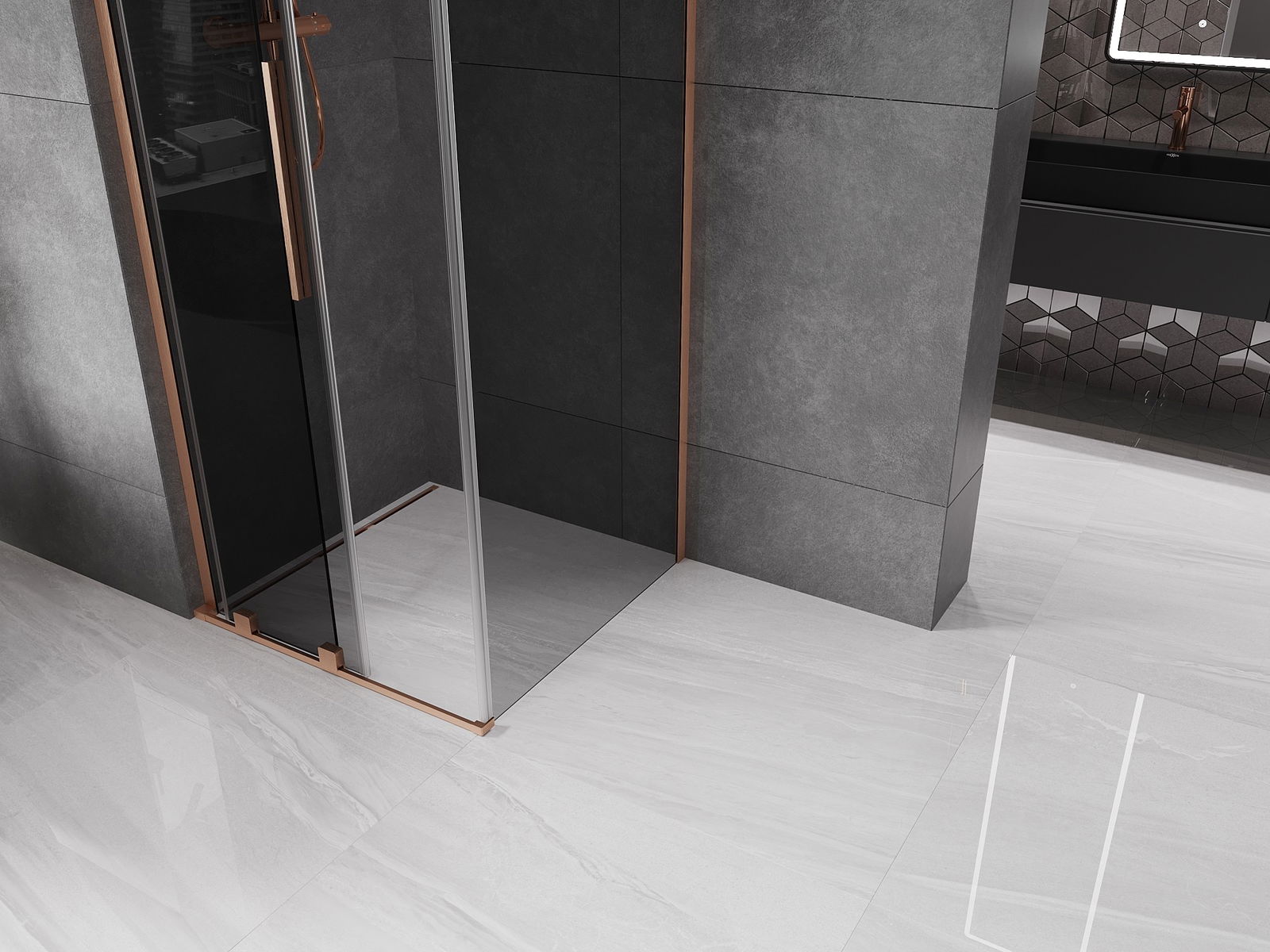 Mexen Velar L stumdomoji dušo kabina 90 x 90 cm, grafitas, šlifuotas varis - 871-090-090-43-65