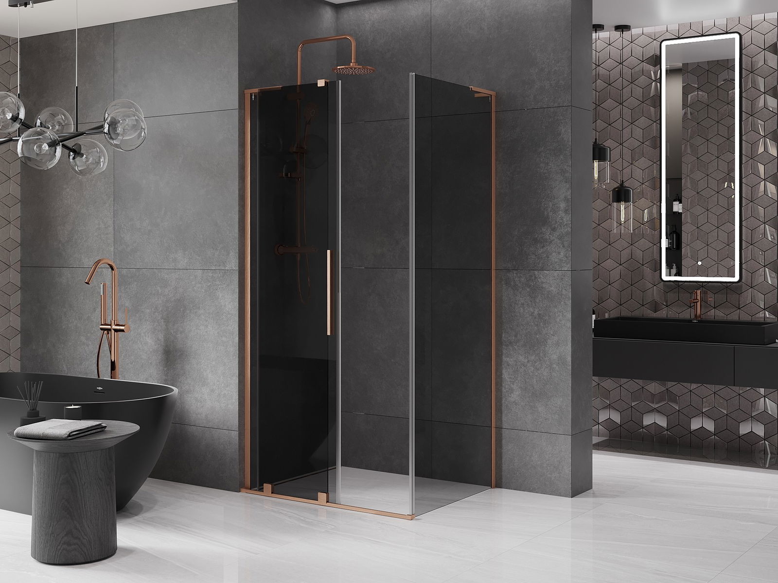Mexen Velar L stumdomas dušo kabina 100 x 70 cm, grafitas, šlifuotas varis - 871-100-070-43-65