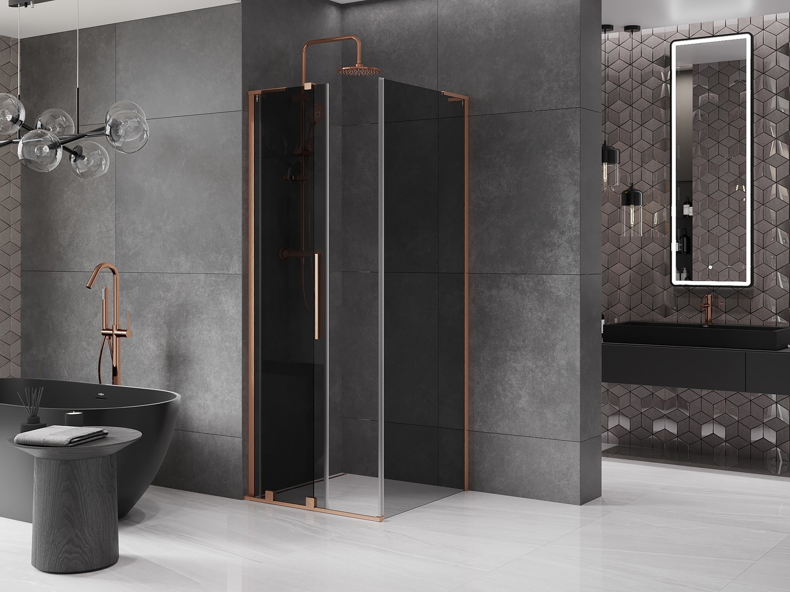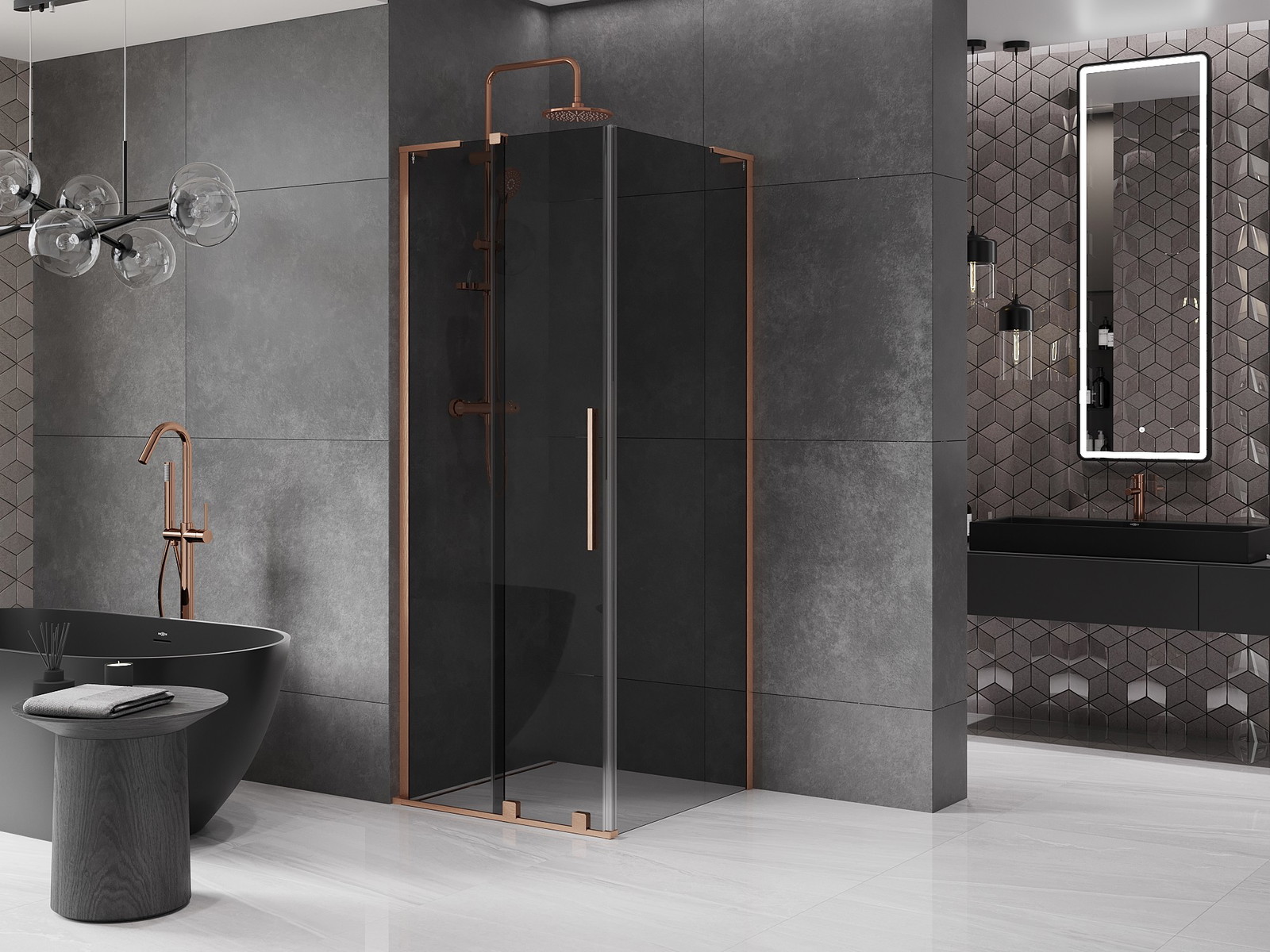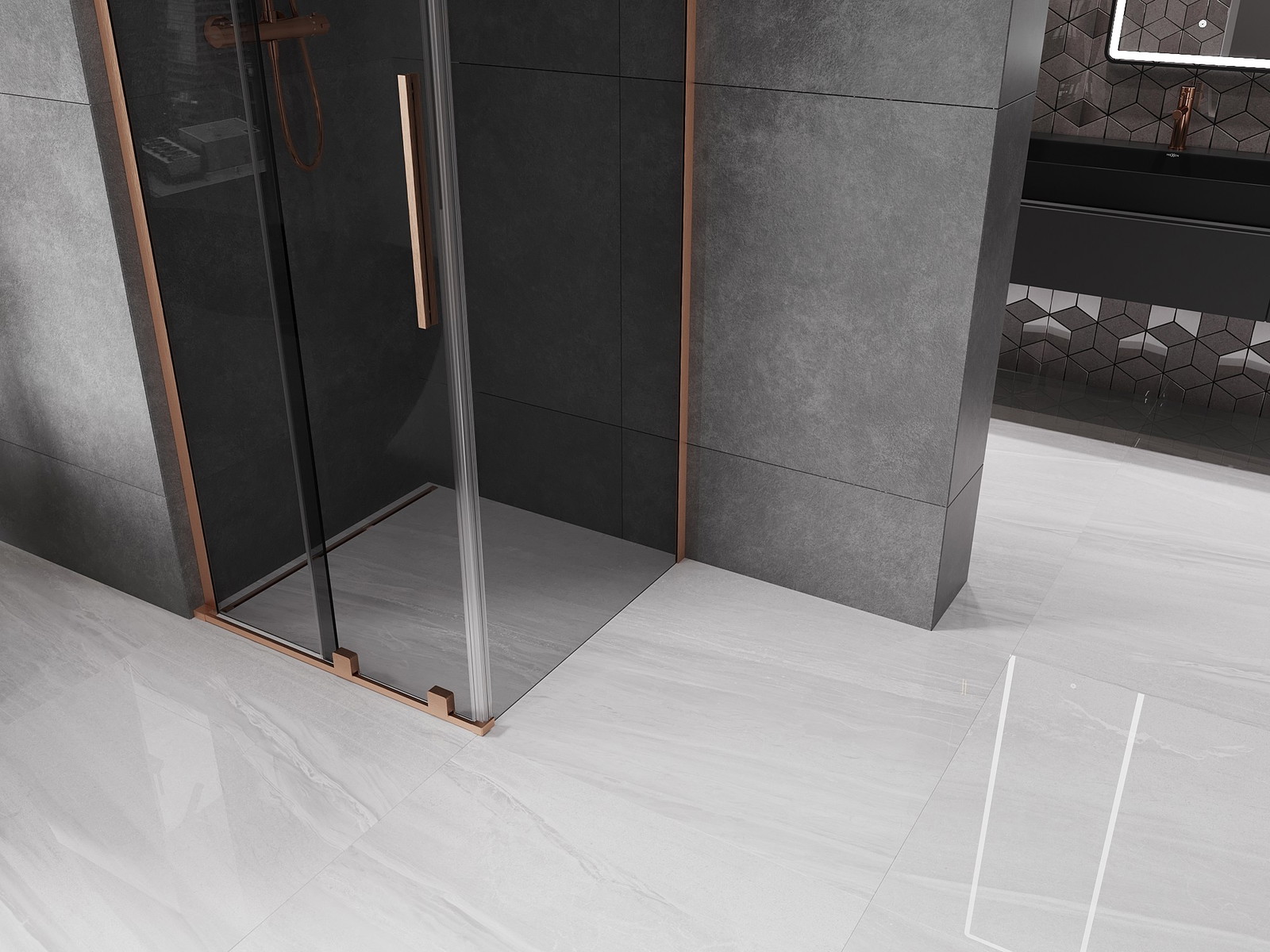 Mexen Velar L stumdomas dušo kabina 110 x 110 cm, grafitas, šlifuota varis - 871-110-110-43-65