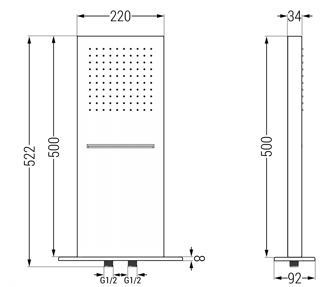 Lietaus dušo galvutės skersmuo yra tik 8 mm storio, kuri suteikia jai nepaprastai liekną išvaizdą. Plona konstrukcija idealiai tinka šiuolaikinei vonios interjero apdailai, suteikdama lengvumo įspūdį. Puikus pasirinkimas minimalistiniams dizainams.