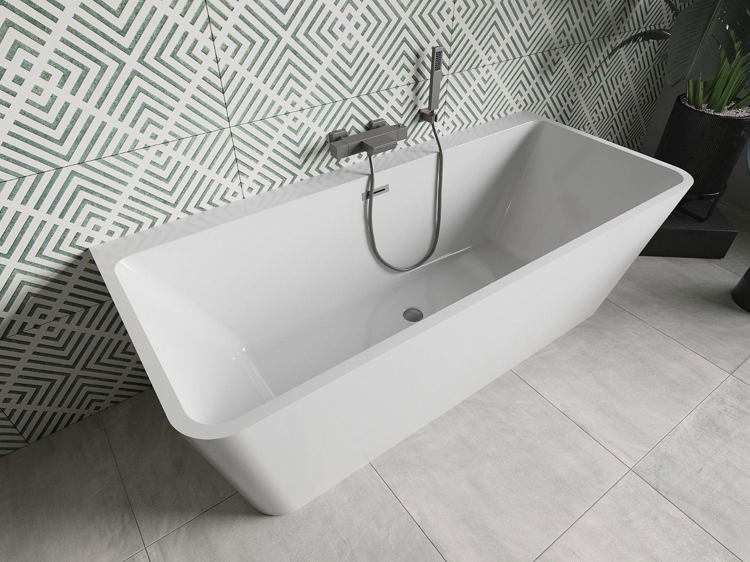 Mexen Volta laisvai pastatoma vonia prie sienos 150 x 75 cm, balta, perpylimas gun gray šlifuotas - 51131507500-66