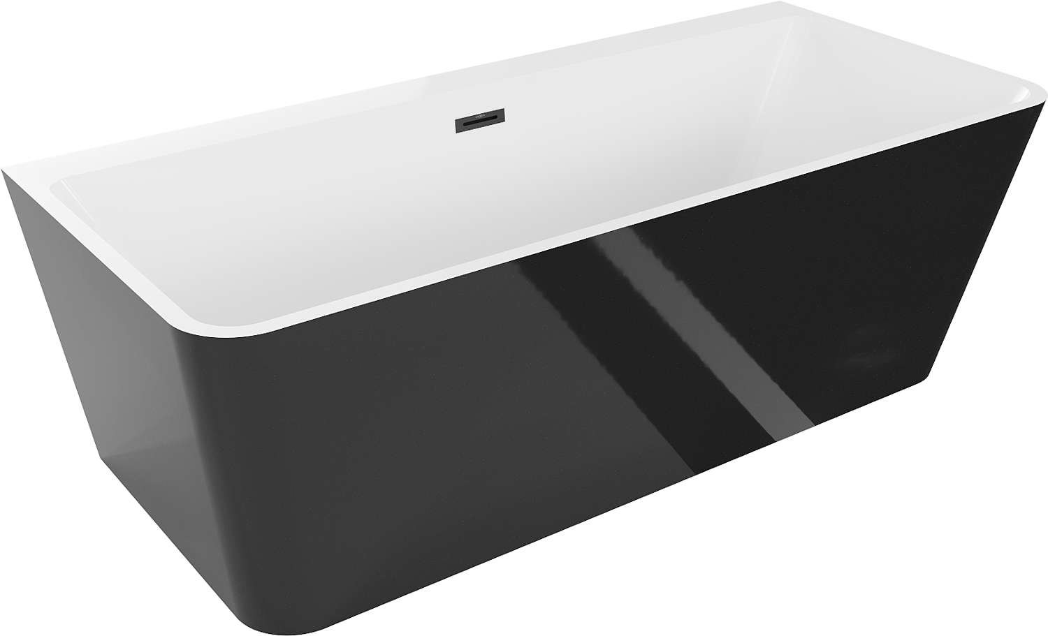 Mexen Volta laisvai stovinti vonia prie sienos 150 x 75 cm, balta/juoda, juodas persipylimas - 51131507575-70