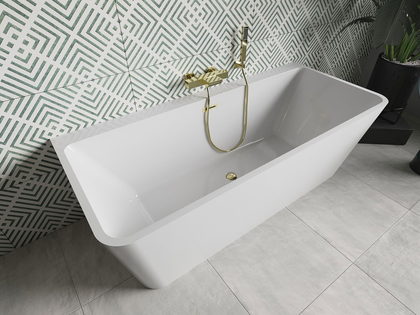 Mexen Volta laisvai pastatoma prie sienos vonia 170 x 75 cm, balta, aukso spalvos perpildymo anga - 51131707500-50