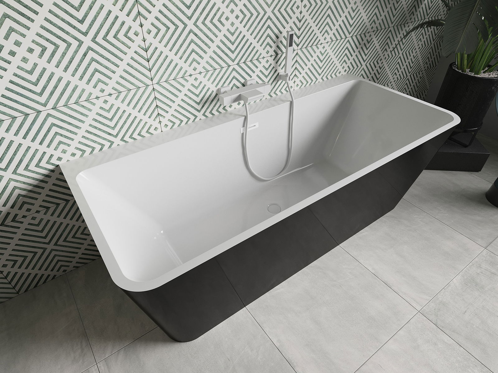 Mexen Volta laisvai stovinti sieninė vonia 170 x 75 cm, balta/juoda, baltas persipylimas - 51131707575-20