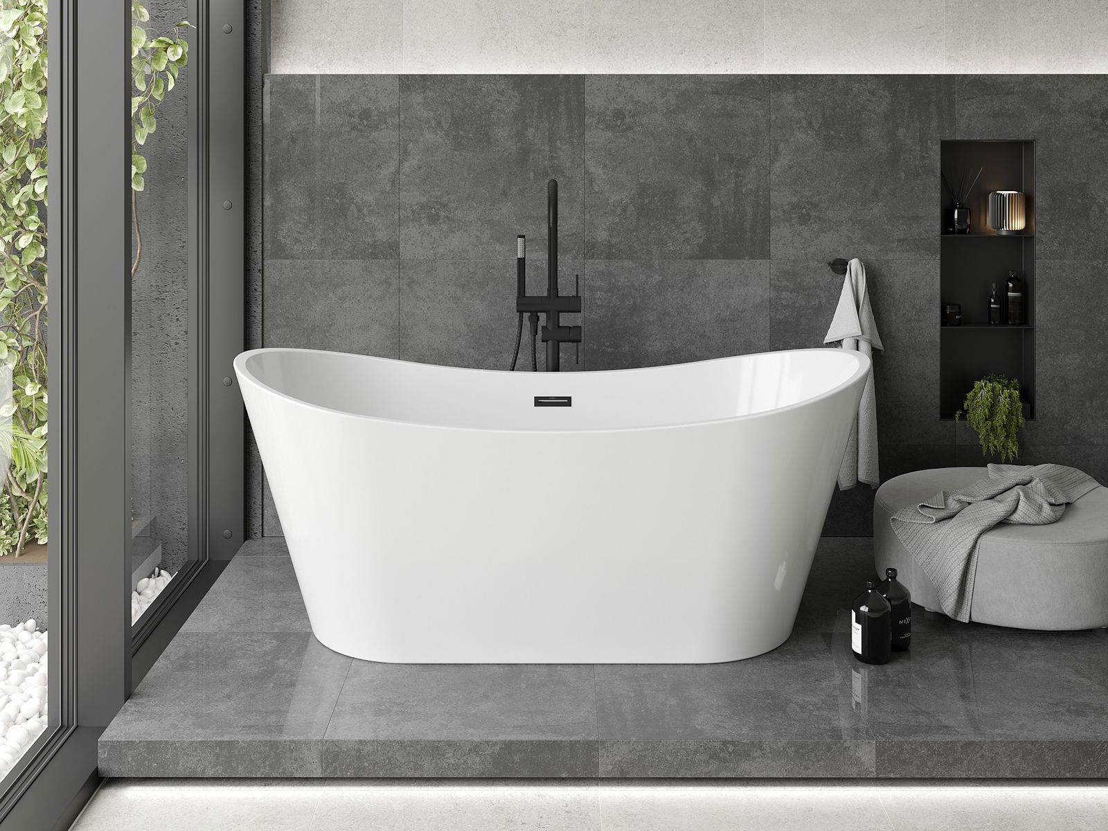 Laisvai stovinti vonia 150 x 75 cm iš Montana serijos yra idealus stiliaus ir funkcionalumo derinys. Pagaminta iš sanitarinio akrilo, pasižymi ovalia forma ir elegantiška balta spalva su juoda apdaila. Dėl didelio atsparumo matiniams ir UV spinduliams, ji išlaikys savo išvaizdą ilgiau. Papildomai turi persipylimo angą, o komplekte rasite sifoną ir klik-klak kamštį, todėl ją lengva montuoti ir naudoti.