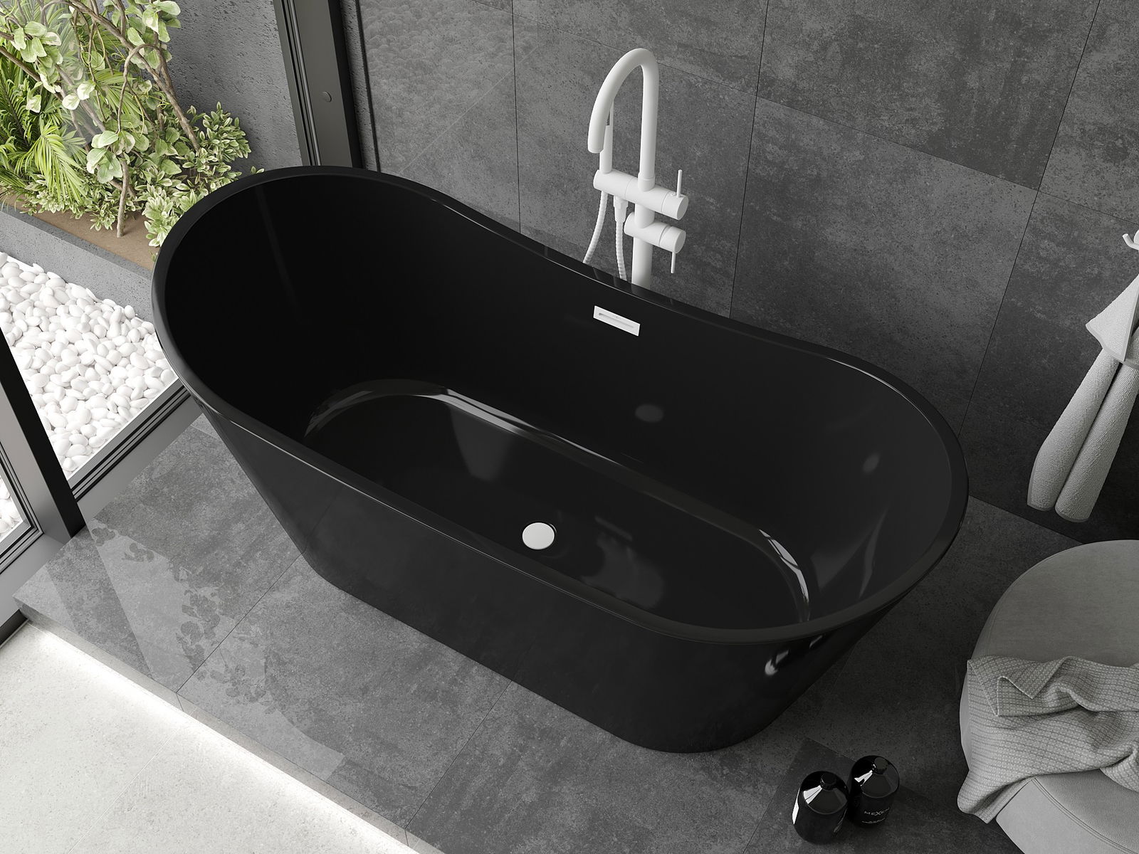 Mexen Montana laisvai pastatoma vonia 170 x 80 cm, juoda, baltas persipylimas - 52011708070-20