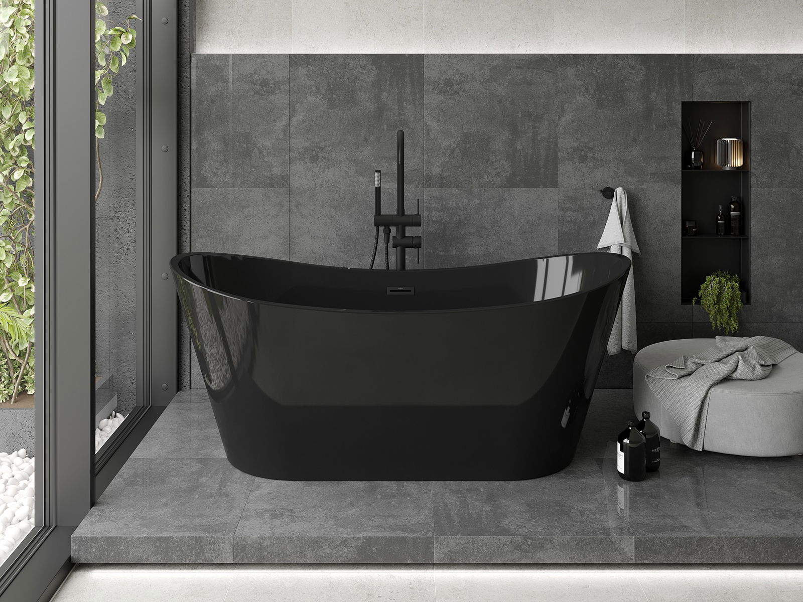 Mexen Montana laisvai pastatoma vonia 170 x 80 cm, juoda, juodas persipylimas - 52011708070-70