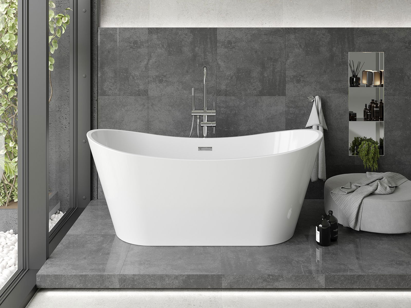 Mexen Montana laisvai pastatoma vonia 180 x 80 cm, balta, chromuotas perteklius - 52011808000-01