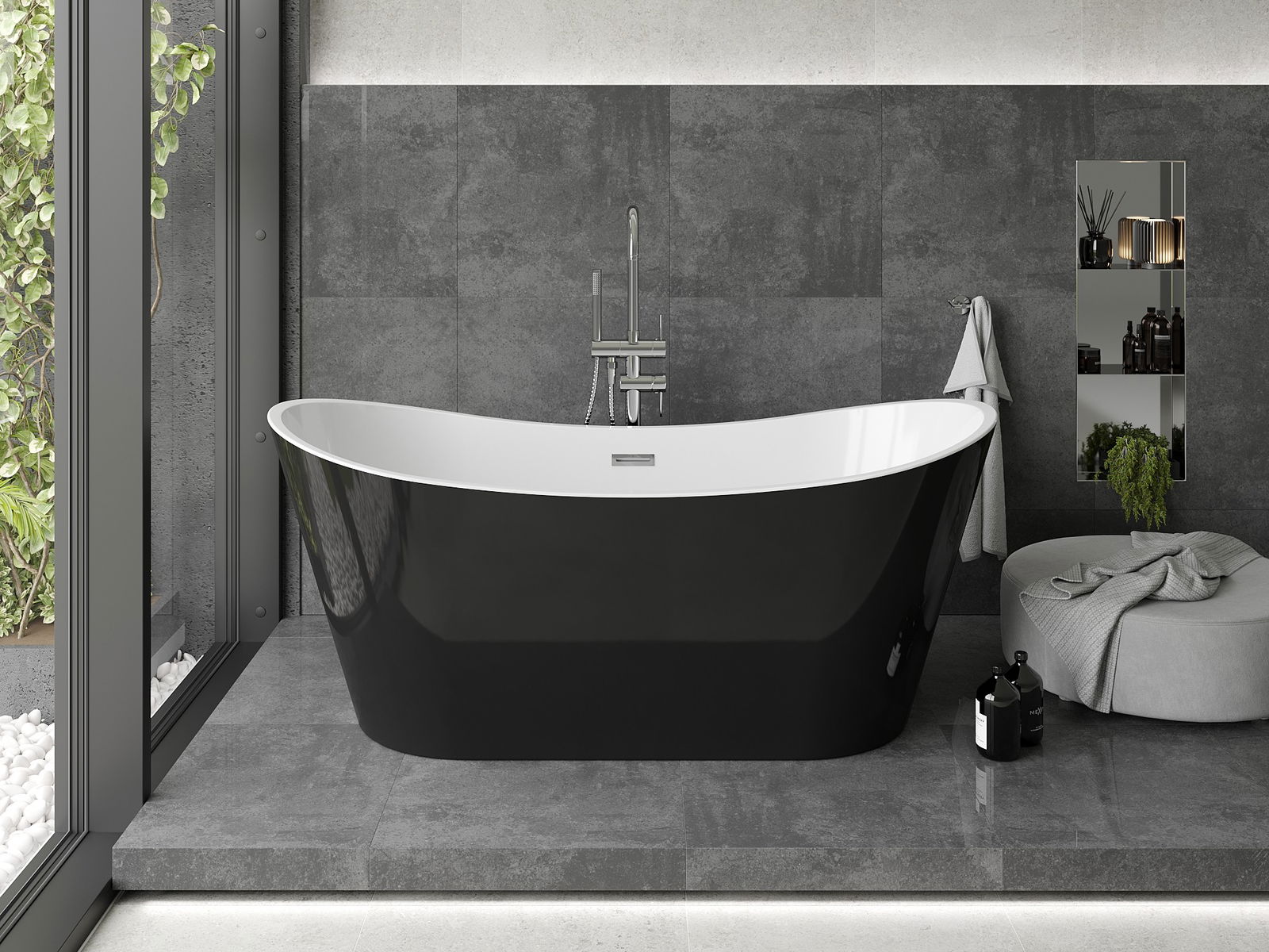 Laisvai pastatoma vonia, kurios matmenys 180 x 80 cm, yra puikus pasirinkimas žmonėms, vertinantiems eleganciją ir komfortą. Pagaminta iš sanitarinio akrilo, jos baltai juoda spalvinė gama kartu su chromuota apdaila sukuria modernų dizainą. Ovalo forma ir paviršiaus blizgesys suteikia jai išskirtinę išvaizdą. Vonia yra su išleidimo anga ir sifonu, kas užtikrina patogumą naudojant. Dėl atsparumo blukimui ir UV spinduliams, ilgą laiką išlaiko estetišką išvaizdą.