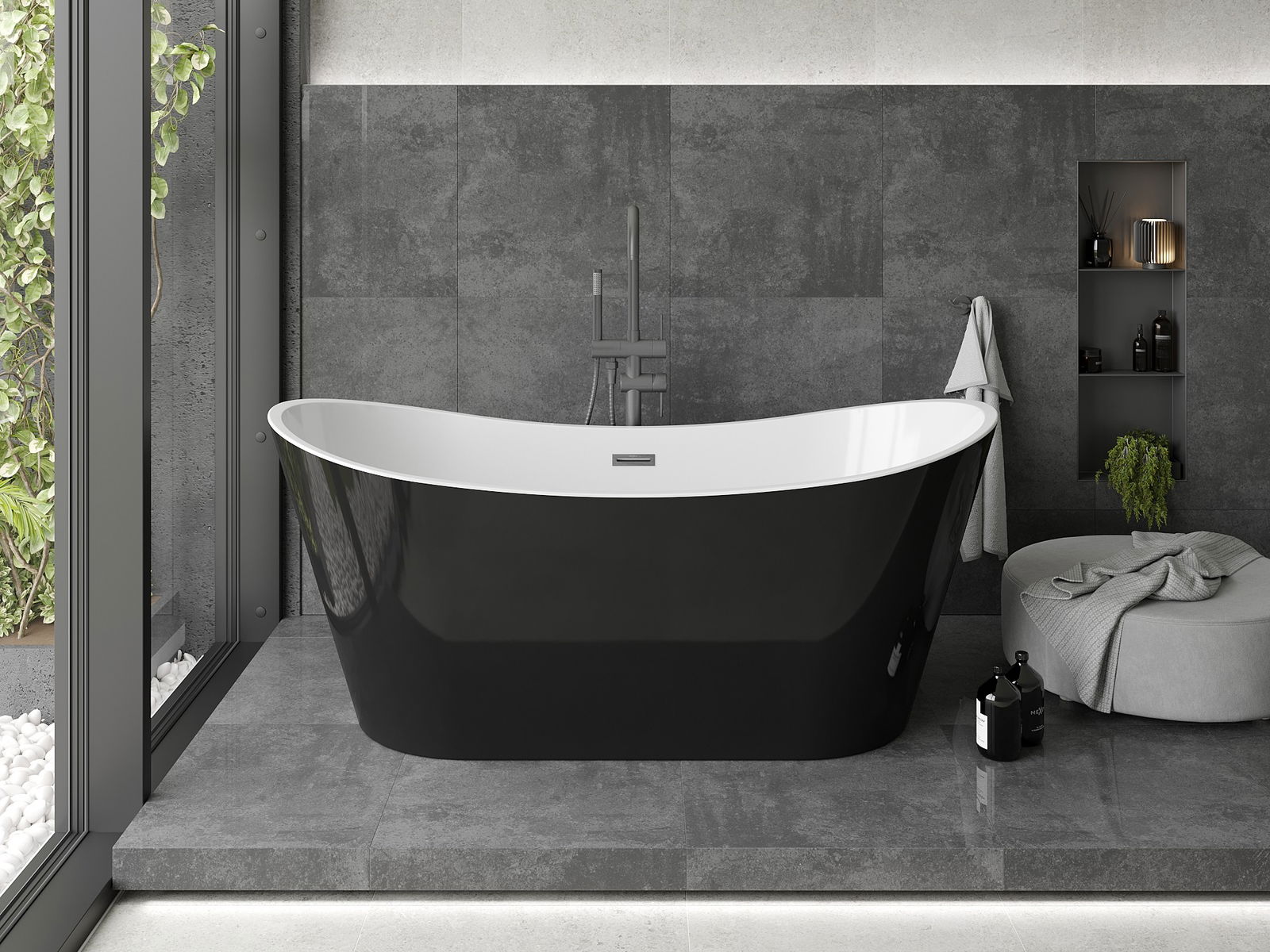 Mexen Montana laisvai stovinti vonia 180 x 90 cm, balta/juoda, perpylimas gun gray šepečiuotas - 52011809075-66