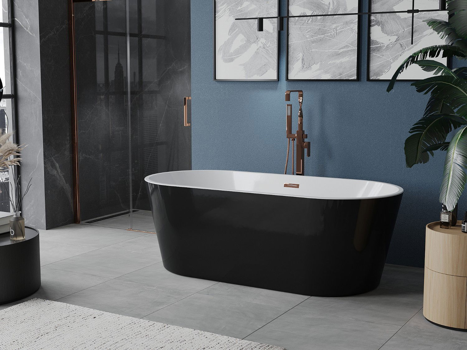 Mexen Luna laisvai pastatoma vonia 150 x 75 cm, balta/juoda, perpylimas rožinis auksas - 52031507575-60