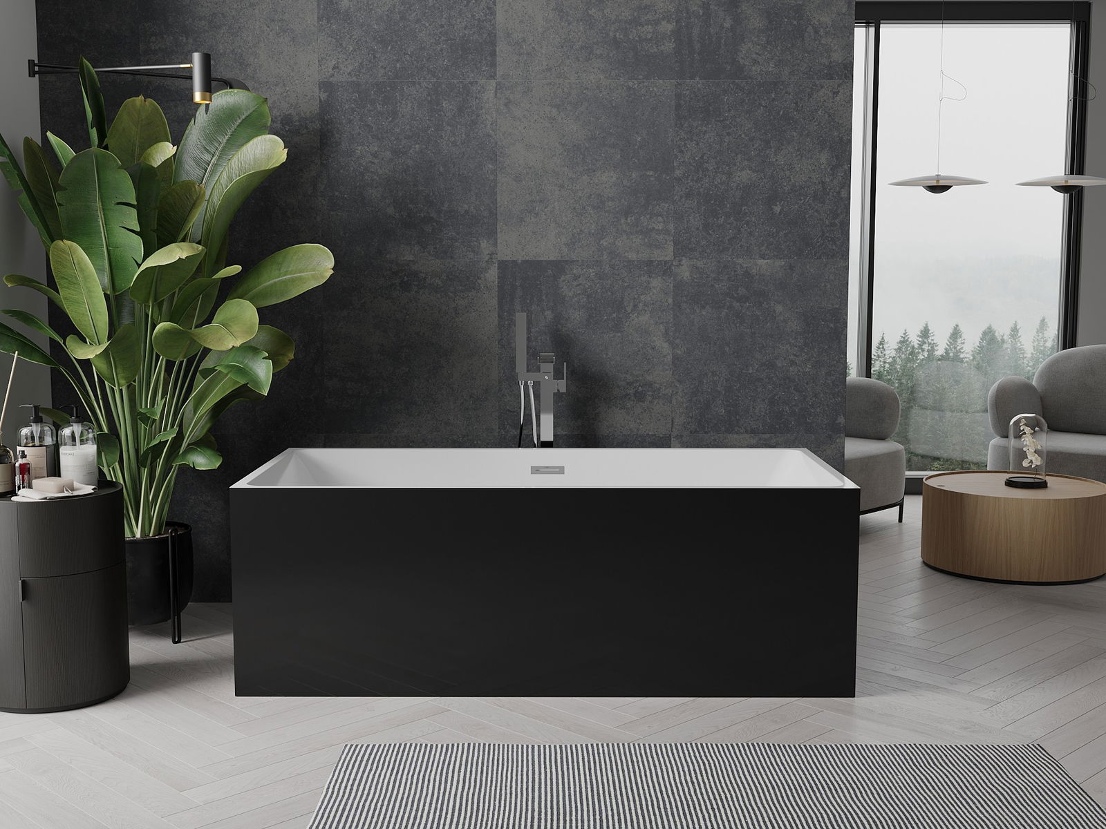 Mexen Nita laisvai pastatoma vonia 170 x 80 cm, balta/juoda, chromuotas perpildymas - 52091708075-01