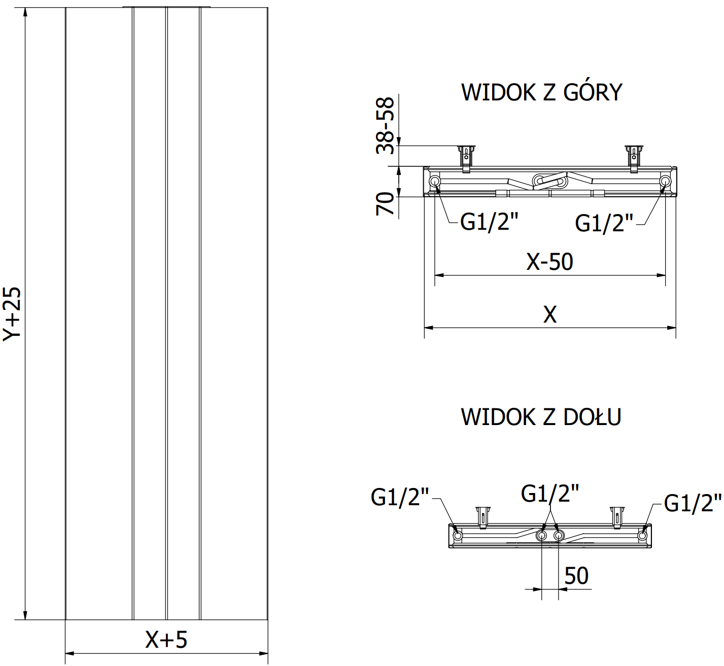Vertikalių vandens kanalų atstumas: 33,3 mm