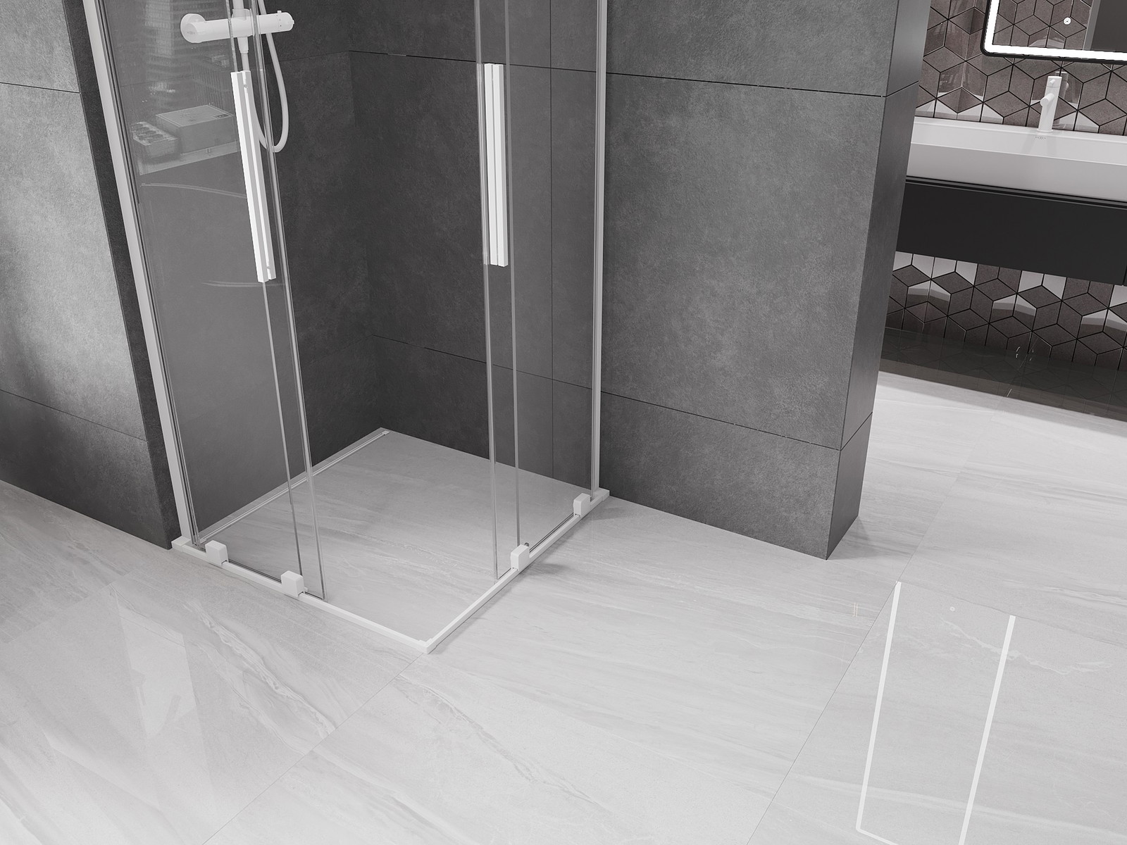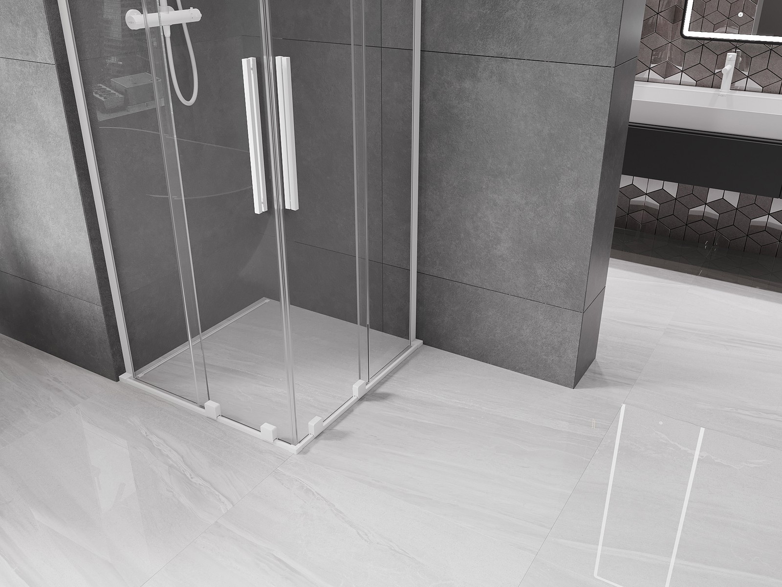 Mexen Velar L Dviguba dušo kabina stumdoma 80 x 80 cm, permatomas, balta - 871-080-080-02-03-20