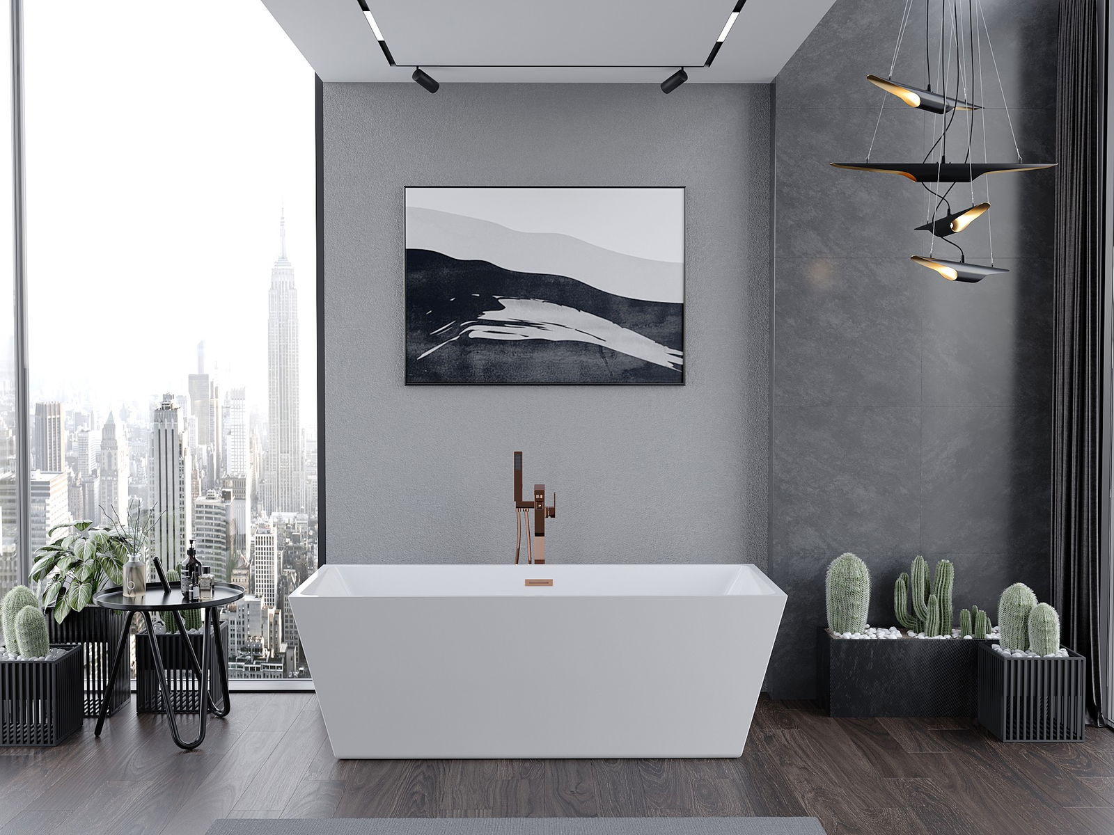 Mexen Lita laisvai pastatoma vonia 170 x 75 cm, balta, perpylimo anga rožinis auksas - 52121707500-60