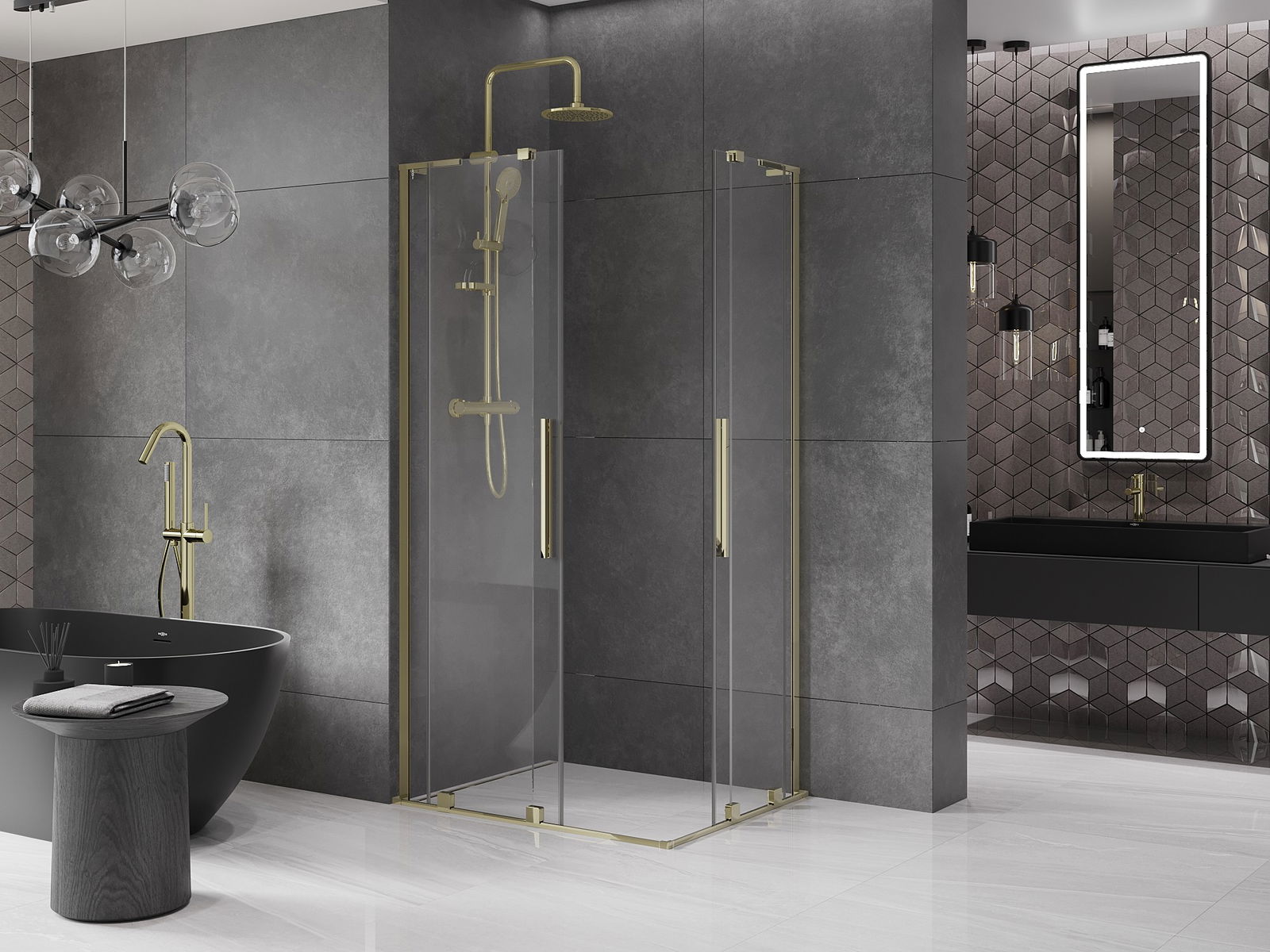 Mexen Velar L Duo stumdomos dušo kabina 90 x 80 cm, skaidri, auksinė - 871-090-080-02-03-50