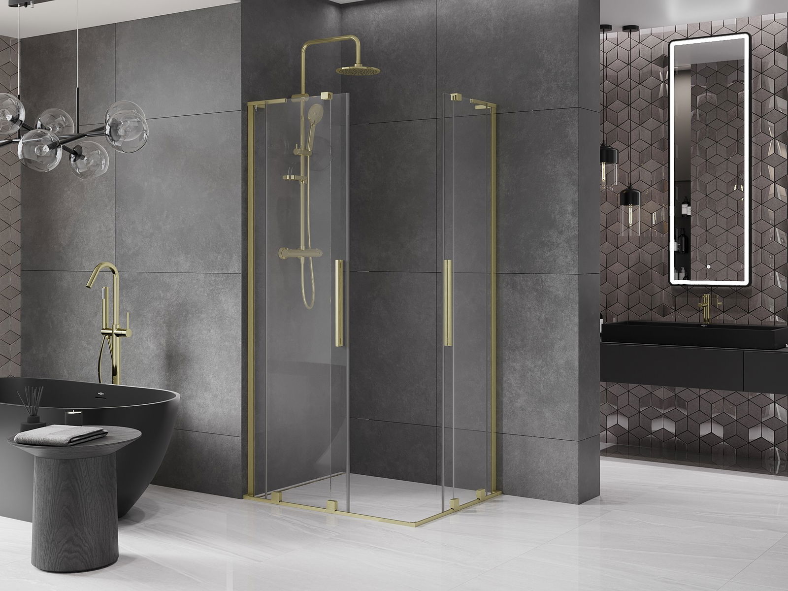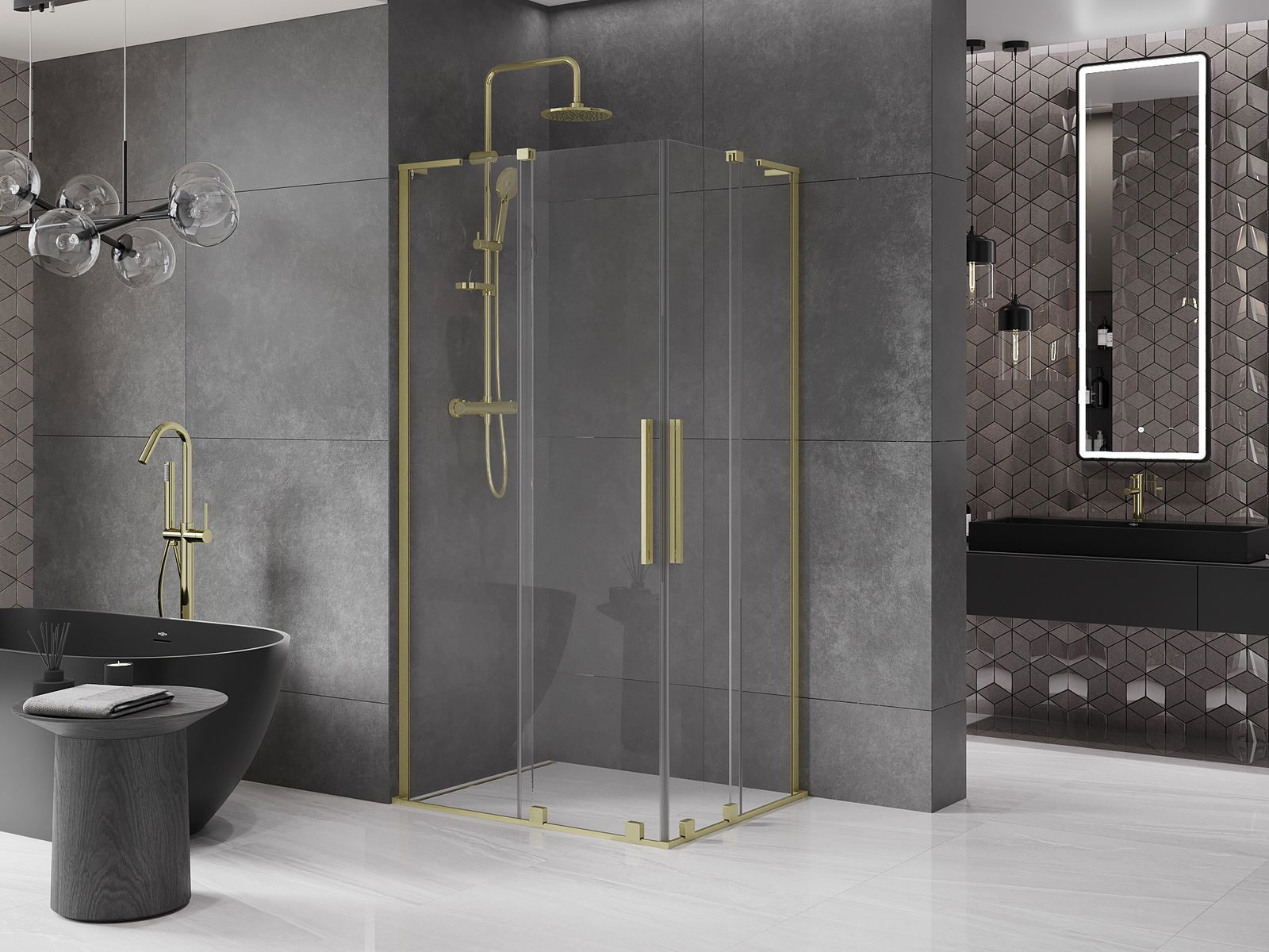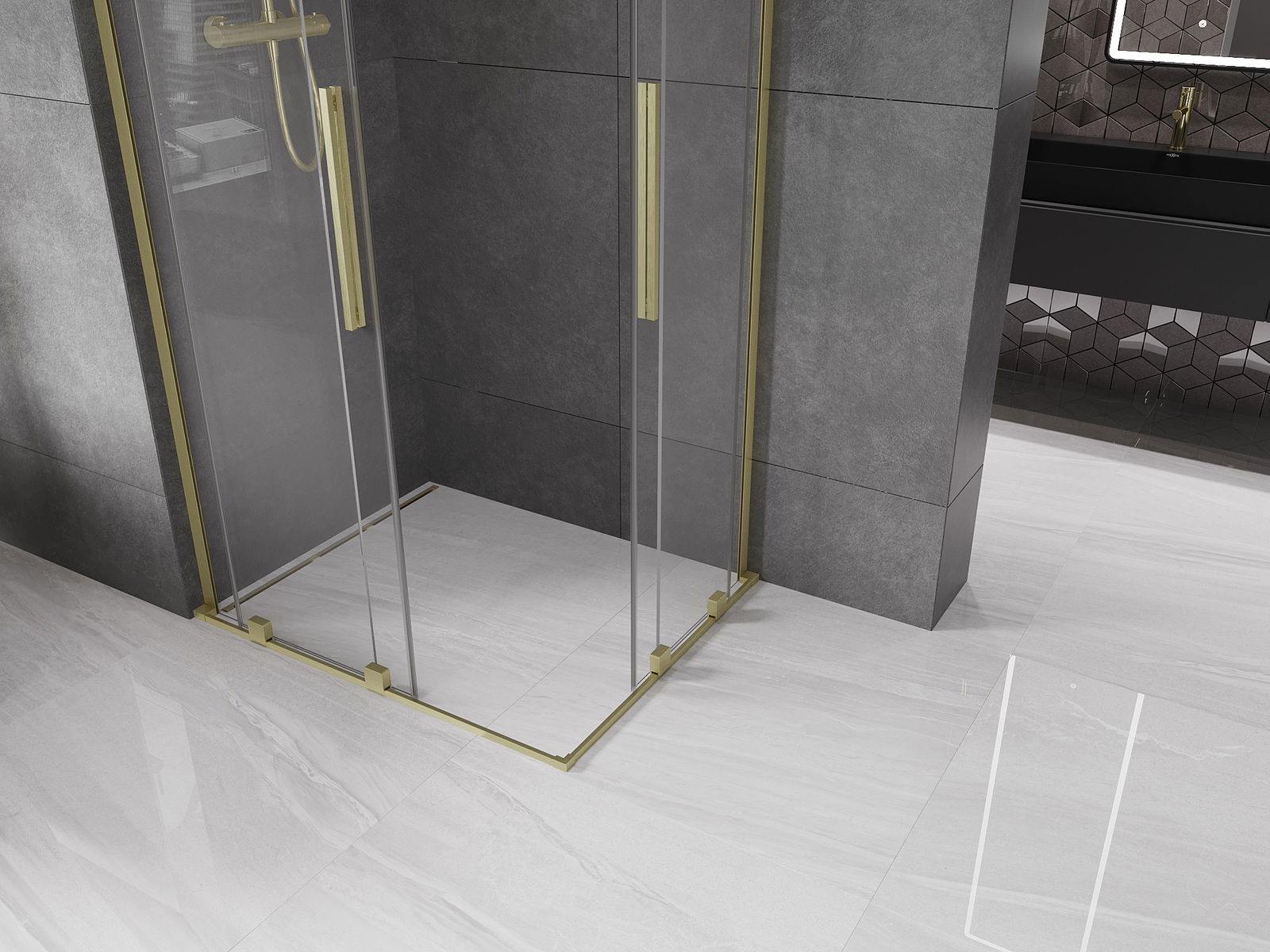 Mexen Velar L Duo stumdomas dušo kabinas 100 x 90 cm, skaidrus, šlifuotas auksas - 871-100-090-02-03-55