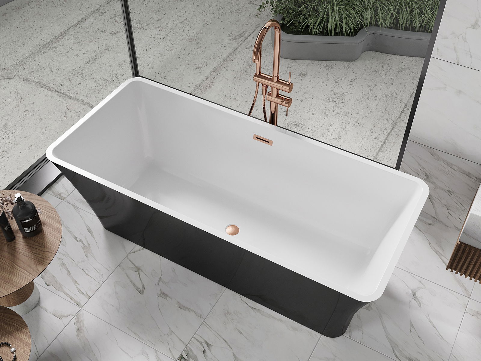 Mexen Tonia laisvai stovinti vonia 170 x 75 cm, balta/juoda, vario šepečiu - 52171707575-65