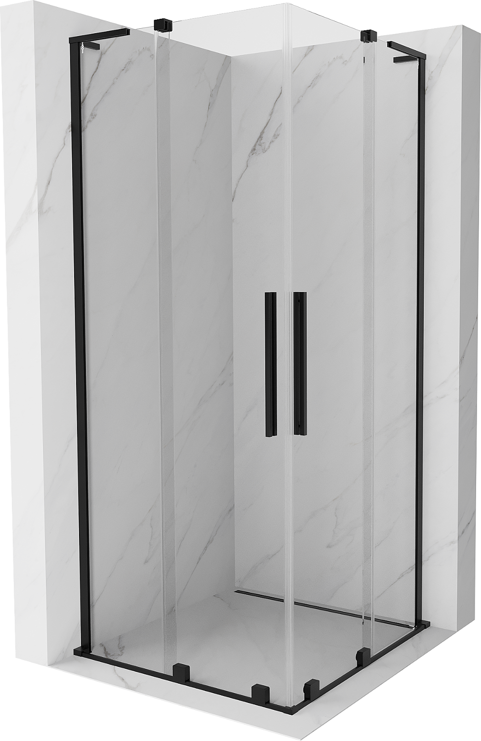 Mexen Velar L Dviguba dušo kabina su stumdomomis durimis 80 x 80 cm, permatoma, juoda - 871-080-080-02-03-70