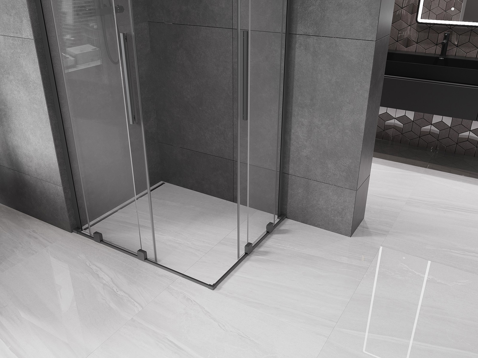 Mexen Velar L Duo slankiojanti dušo kabina 90 x 80 cm, skaidri, gun metalas - 871-090-080-02-03-95