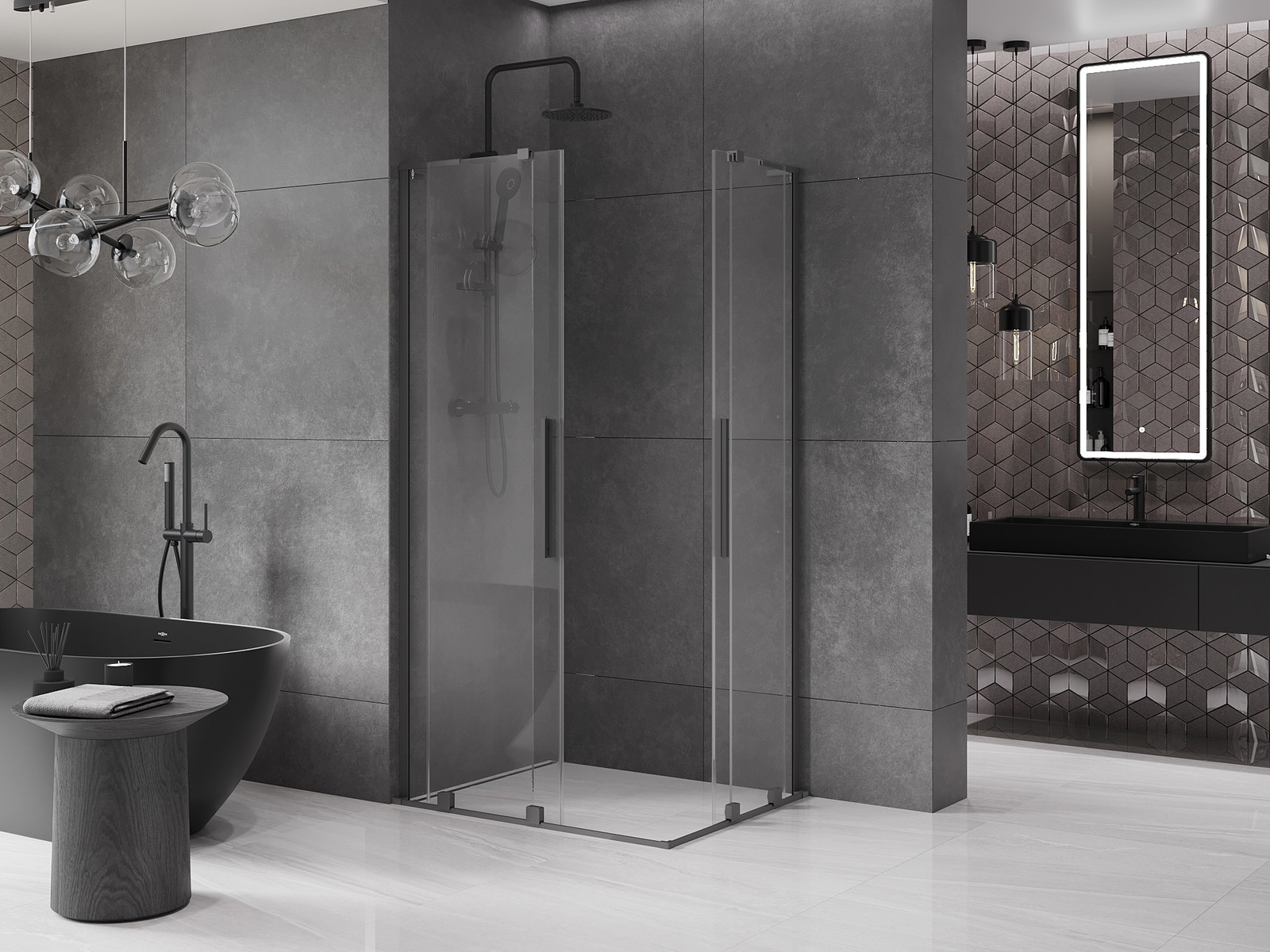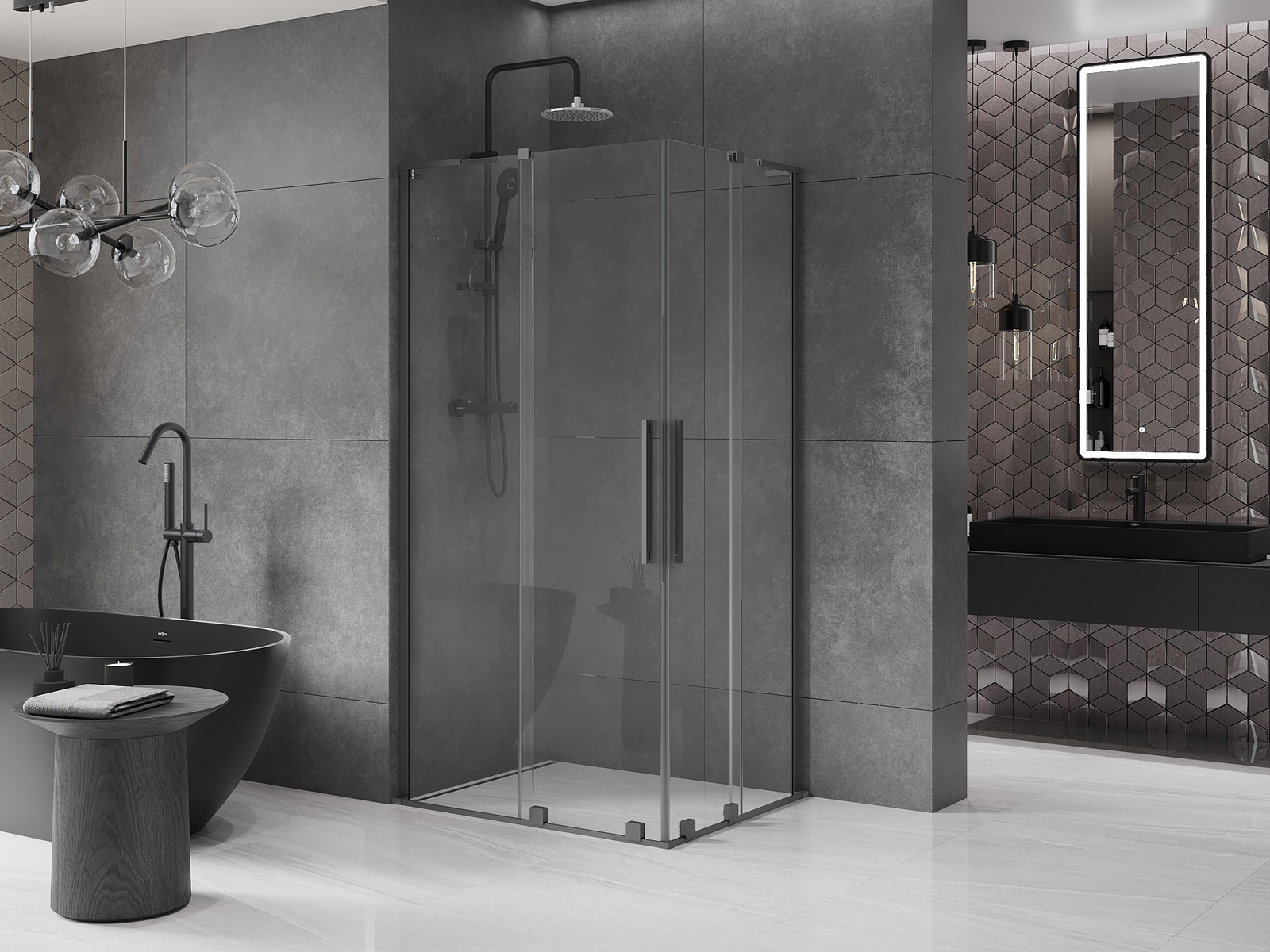 Mexen Velar L Duo yra išskirtinė slankiojanti dušo kabina, kurios matmenys 90x80 cm, puikiai tinkanti bet kuriai vonios kambariui dėl universalaus montavimo. Pagaminta iš 8 mm storio grūdinto stiklo su skaidria apdaila, suteikiančia eleganciją ir ilgaamžiškumą. Gun metalas ir nerūdijantis plienas stabilizatoriuje ir rankenoje suteikia modernų charakterį. Dėl dangos, palengvinančios valymą, ir pločio reguliavimo galimybės naudojimas ir priežiūra yra itin lengvi. Kabina aprūpinta naujausiomis technologijomis, tokiomis kaip vandens nukreipimo tarpikliai, aliuminio durų sandarinimo slenkstis ir aukščiausios kokybės viengubi ratukai, užtikrinantys komfortą ir estetiką daugelį metų.