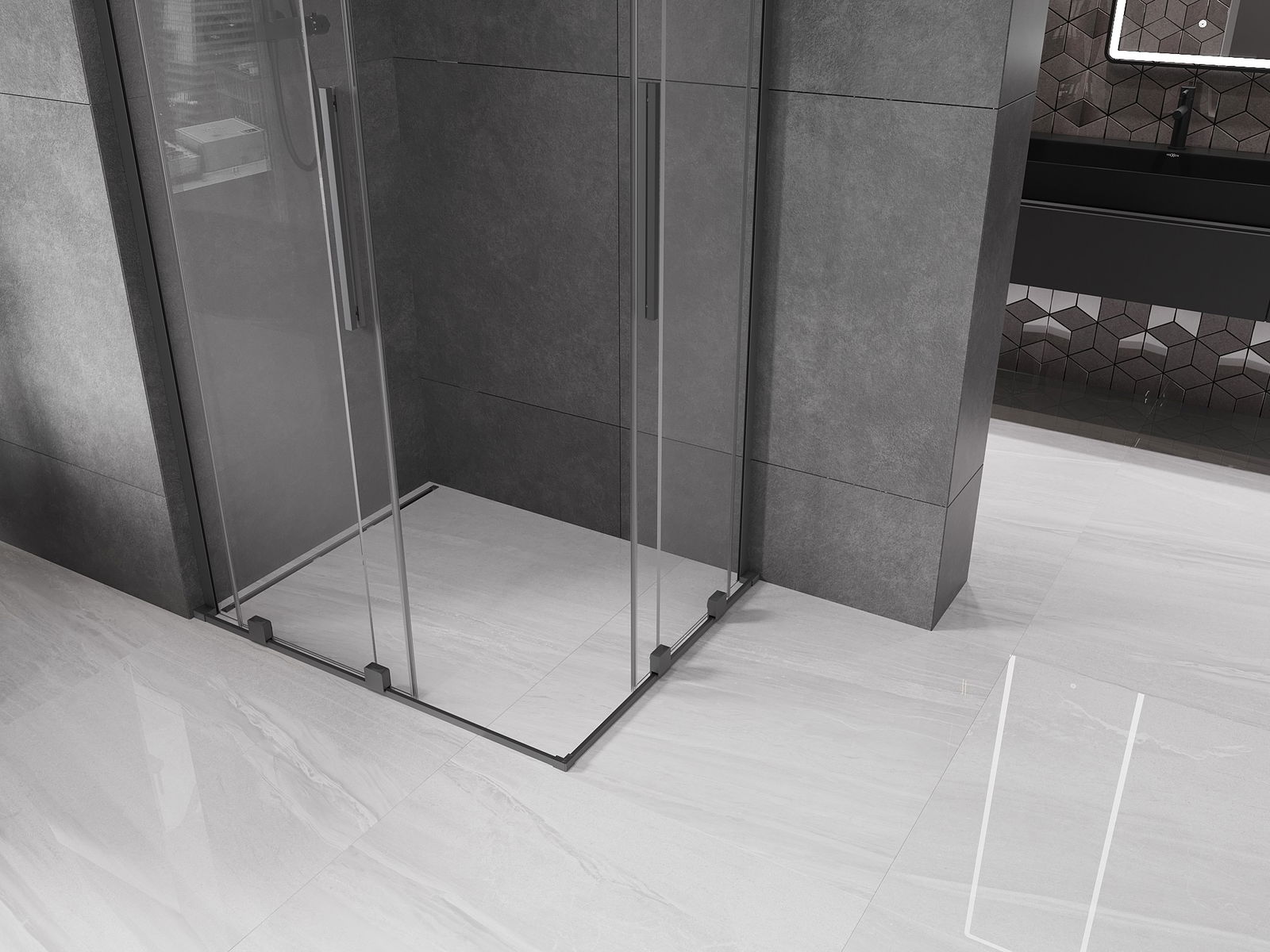 Mexen Velar L Duo stumdomoji dušo kabina 100 x 90 cm, permatoma, ginklų metalo - 871-100-090-02-03-95