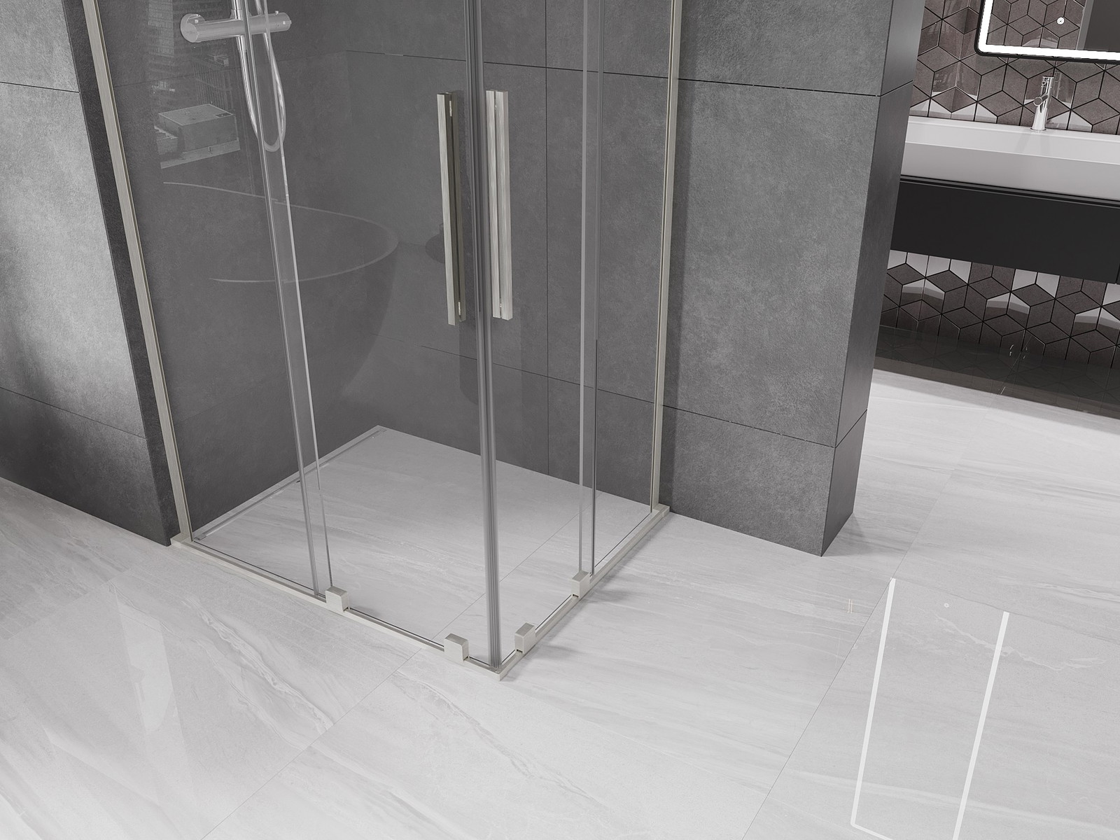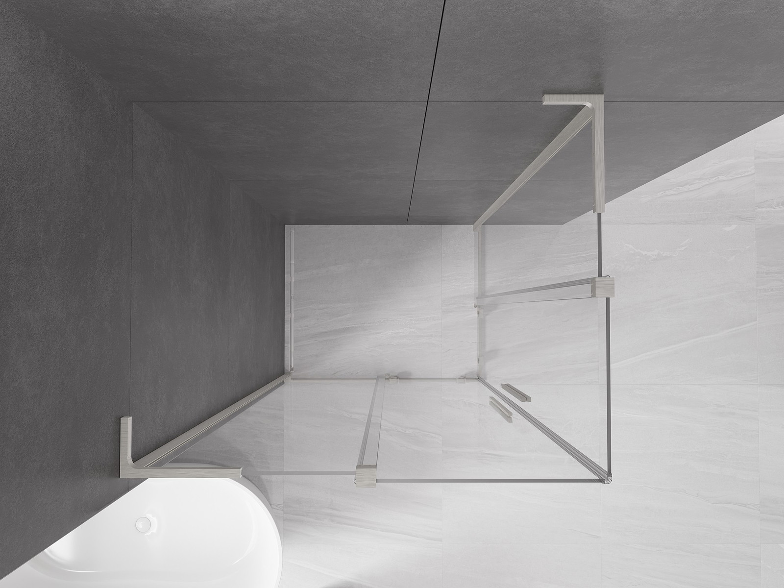 Mexen Velar L Dviguba stumdomoji dušo kabina 90 x 80 cm, skaidri, šlifuotas nikelis - 871-090-080-02-03-97