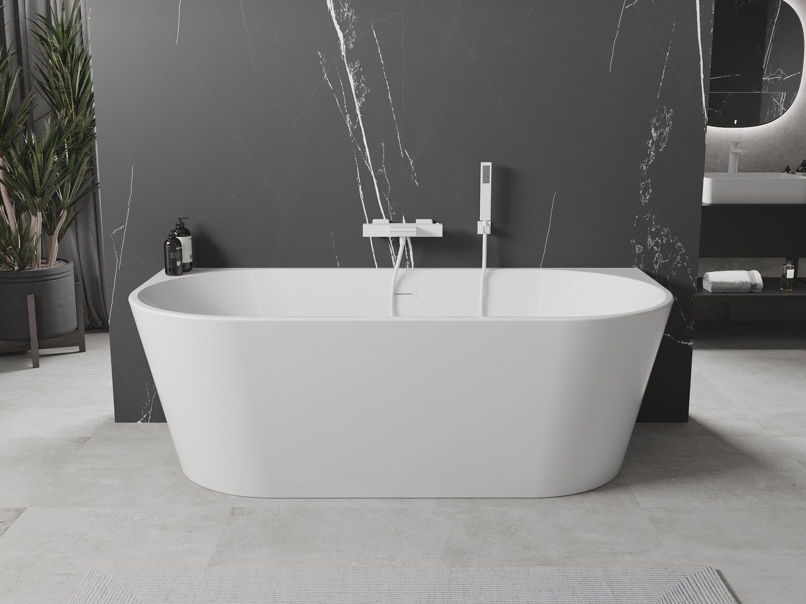 Laisvai pastatoma prie sienos ovali vonia, kurios matmenys yra 140 x 75 cm, yra puikus pasirinkimas vertinantiems eleganciją ir patogumą. Pagaminta iš sanitarinio akrilo, pasižymi atsparumu matinimui ir UV spinduliams intensyvioje baltoje spalvoje. Jos ovali forma ir centrinis nutekėjimas garantuoja šiuolaikišką išvaizdą ir funkcionalumą, o montavimas prie sienos palengvina pritaikymą bet kokiam interjerui. Komplekte yra sifonas ir klik klak kamštis, kas užtikrina naudojimo paprastumą.