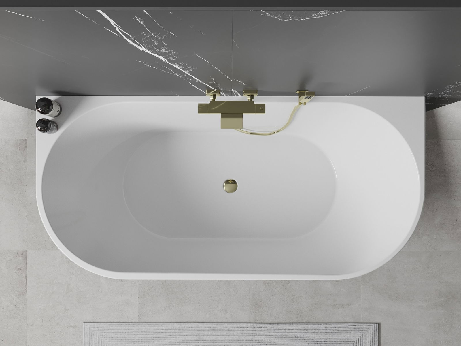 Mexen Oval laisvai stovinti vonia prie sienos 140 x 75 cm, balta, perpildymas auksinis - 52671407500-50