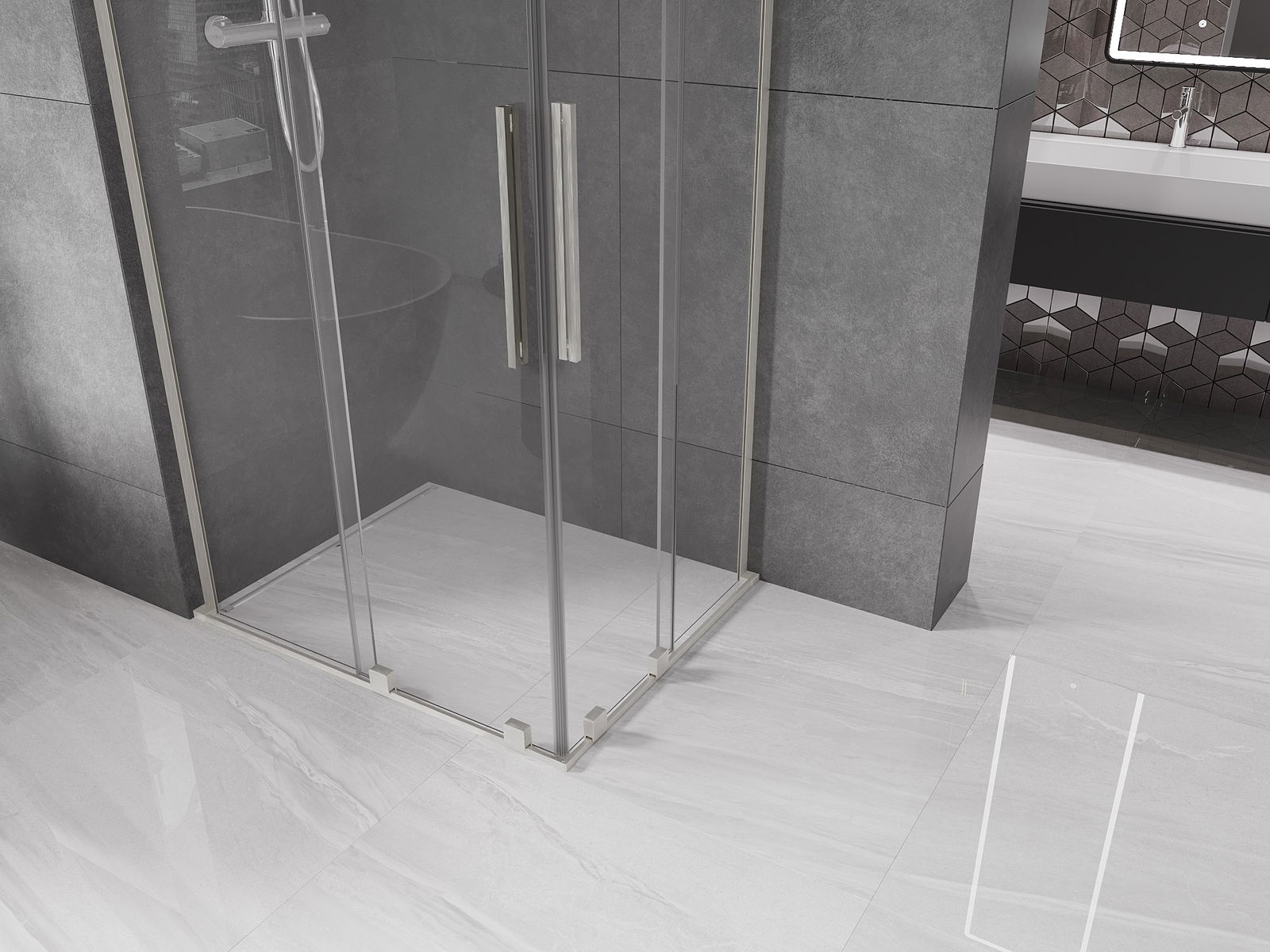 Mexen Velar L Duo stumdomas dušo kabina 100 x 90 cm, permatomas, šlifuotas nikelis - 871-100-090-02-03-97