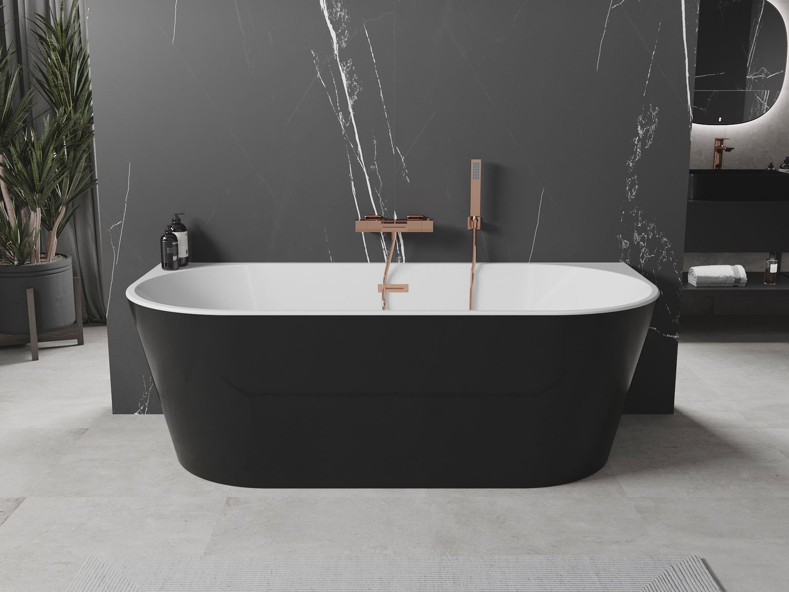 „Mexen Oval“ prie sienos pastatoma laisvostove vonia 140 x 75 cm jungia eleganciją su funkcionalumu. Pagaminta iš sanitarinio akrilo, užtikrina ilgaamžiškumą ir atsparumą blukimui bei UV spinduliavimui. Ovalios formos ir balto bei juodo spalvų derinys su rožiniu auksu suteikia jai modernią išvaizdą. Vonia turi 58 cm aukštį ir 43 cm gylį, užtikrinantį komfortą maudynių metu. Į komplektą įeina sifonas ir klik-klak kamštis, o perpylimo anga padidina jos praktiškumą.