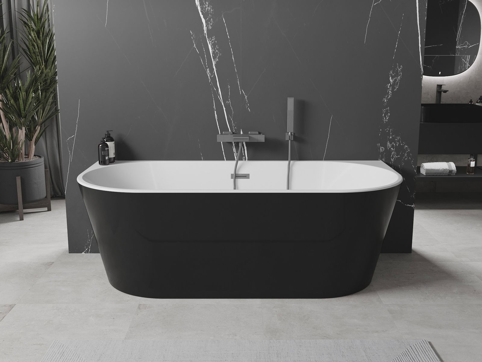 Mexen Oval laisvai stovinti vonia prie sienos 140 x 75 cm, balta/juoda, persipylimas gun gray šlifuotas - 52671407575-66