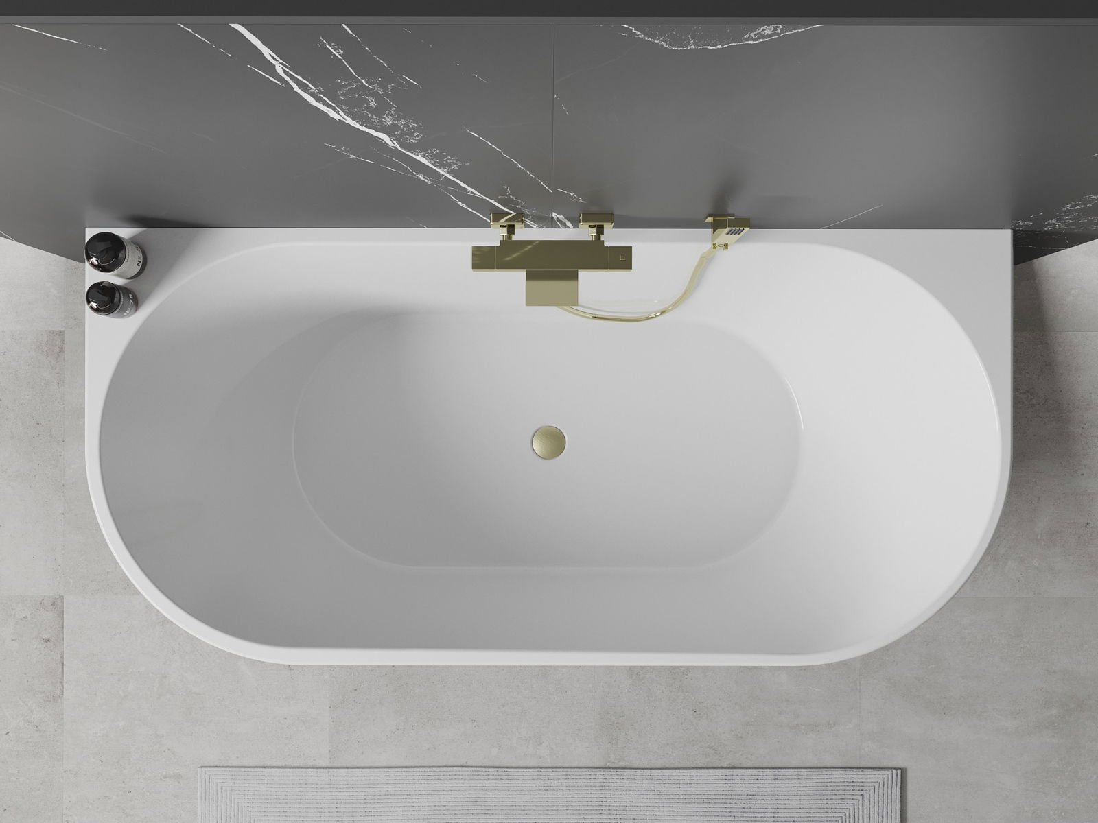 Mexen Oval laisvai stovinti prie sienos vonia 150 x 75 cm, balta, perpildymo anga nuspalvinta auksu šepečiu - 52671507500-55