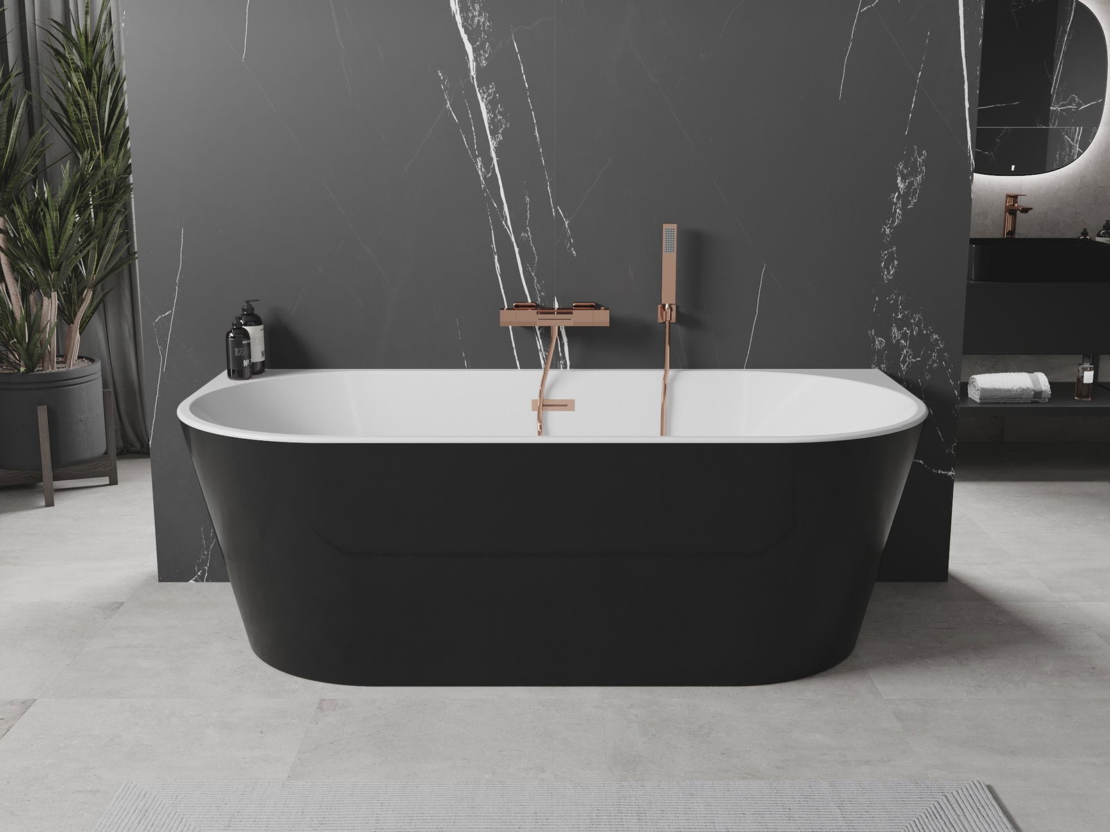 Mexen Oval laisvai pastatoma prie sienos vonia 150 x 75 cm, balta/juoda, šepečiu valyta varinė - 52671507575-65