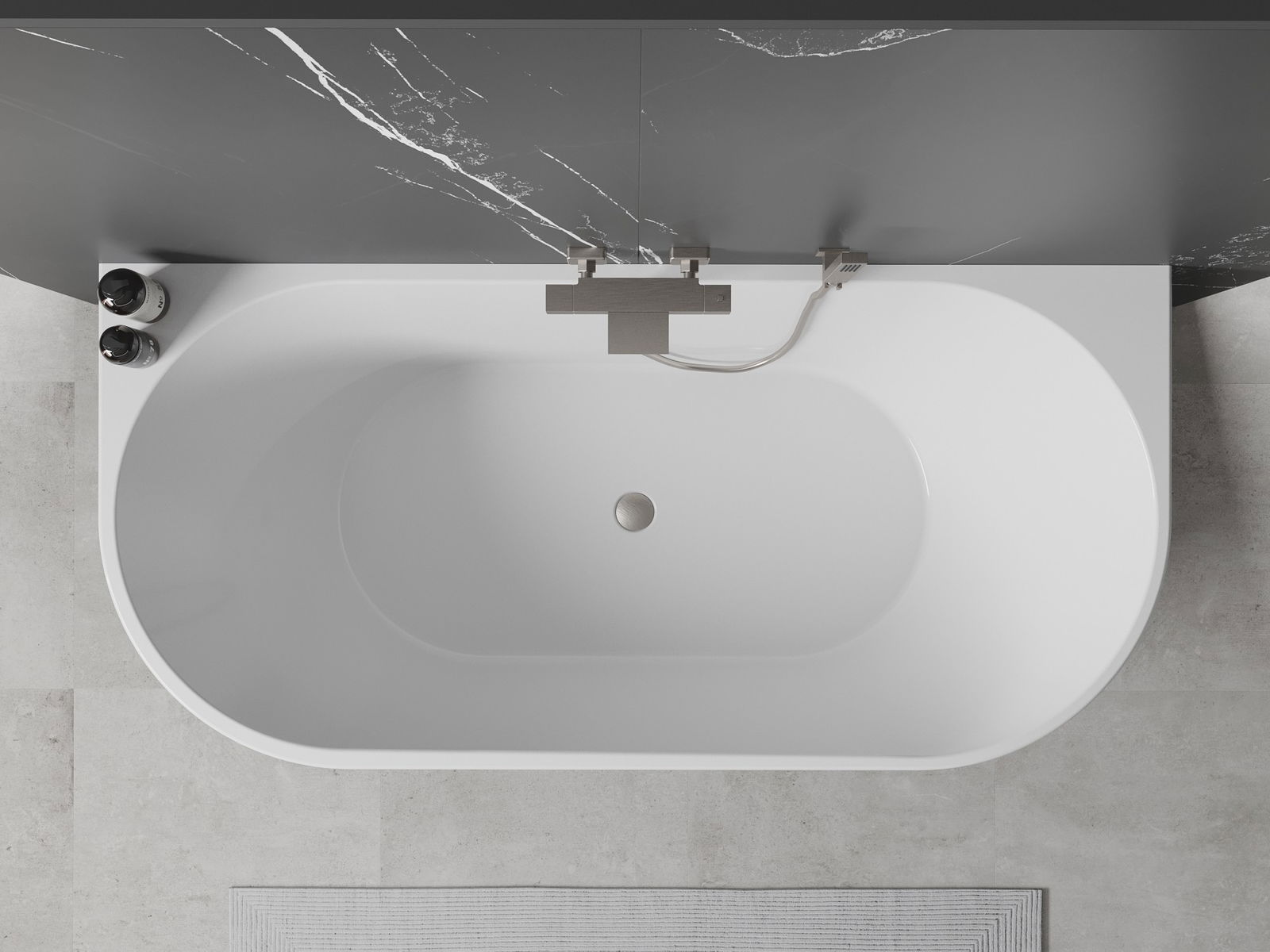 Mexen Oval laisvai stovinti sieninė vonia 170 x 80 cm, balta/juoda, šlifuoto nikelio perpylimo anga - 52671708075-97