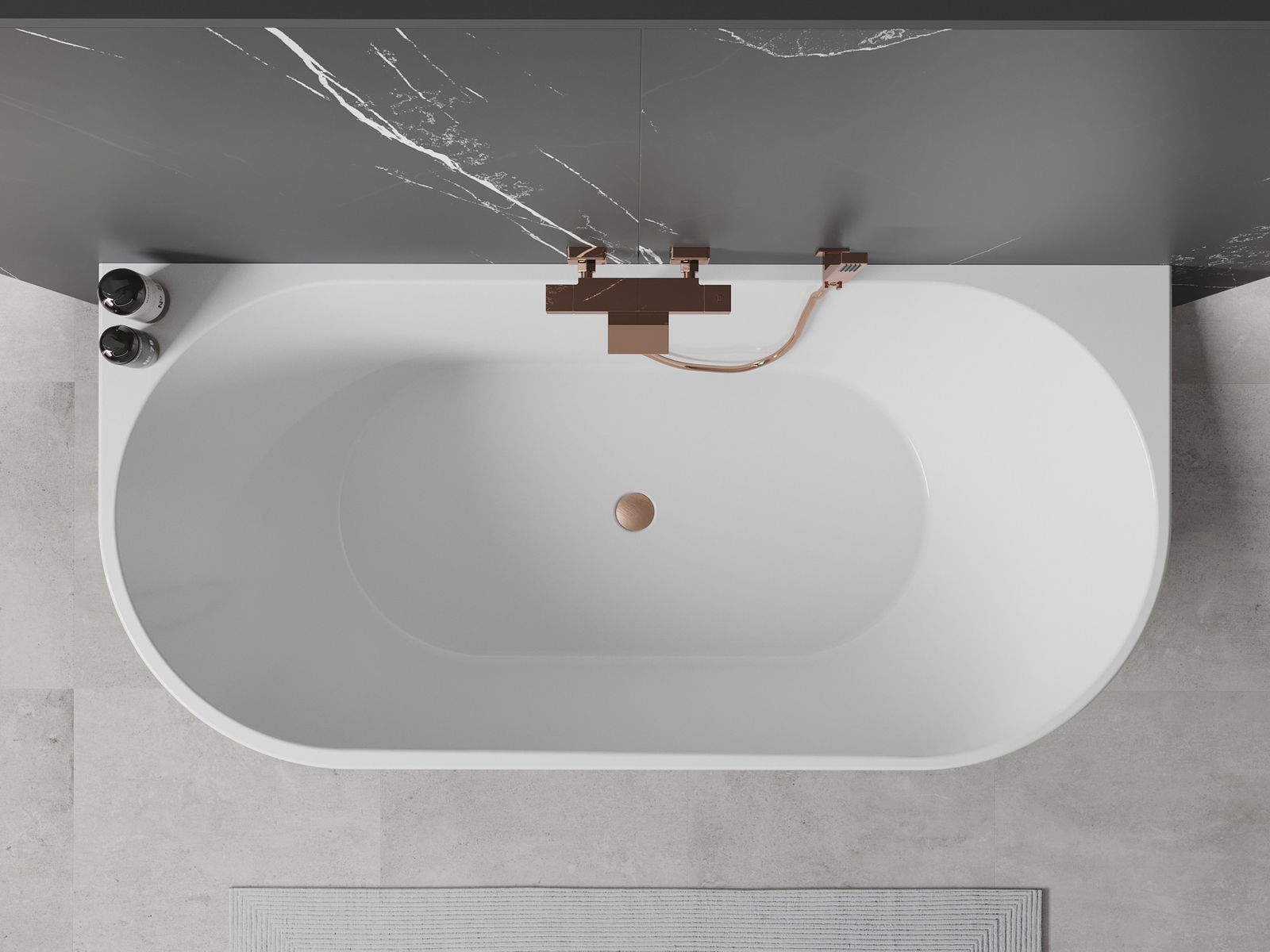 Mexen Oval laisvai pastatoma vonia prie sienos 180 x 80 cm, balta, šlifuoto vario perpildymas - 52671808000-65