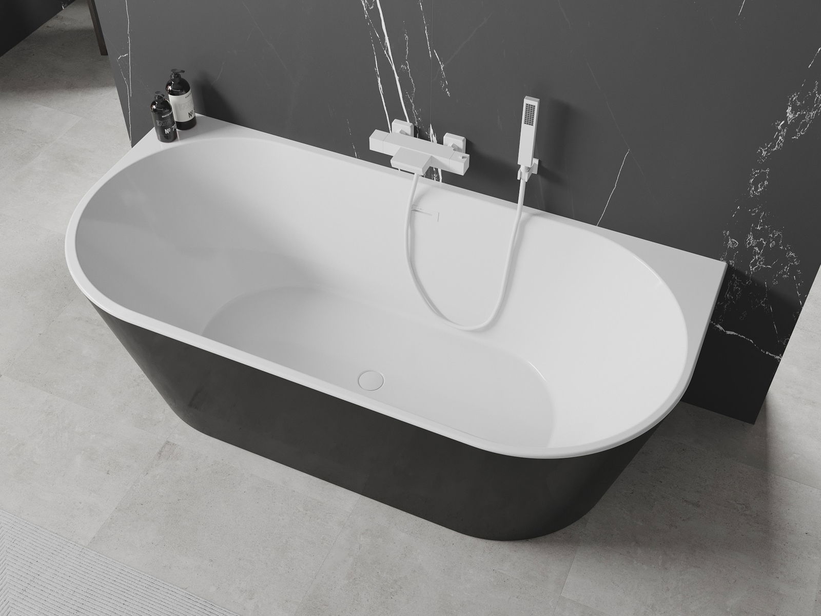 Mexen Oval laisvai stovinti vonia prie sienos 180 x 80 cm, balta/juoda, balta perpildymo anga - 52671808075-20