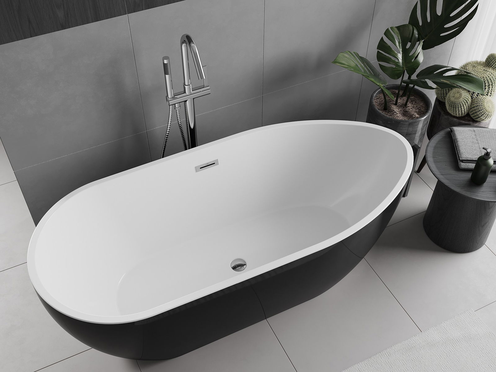 Mexen Eos laisvai stovinti vonia, 170 x 75 cm dydžio, yra idealus pasirinkimas šiuolaikinėms vonioms. Pagaminta iš aukštos kokybės sanitarinio akrilo, ji puikiai derina baltos ir juodos spalvų eleganciją su chromuota apdaila. Jos ovali forma ir tinkamas gylis užtikrina komfortišką maudynę. Vonia turi perpildymo skylę ir viduryje esančią išleidimo vietą, kas padidina jos funkcionalumą. Be to, atsparumas matinimui ir UV spinduliams garantuoja ilgalaikį produkto blizgesį.
